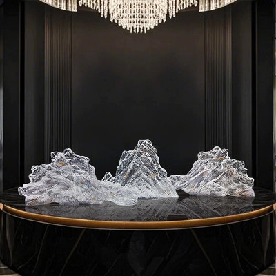 双面新款肌理山型雕塑艺术品进口透明树脂摆件酒店样板房软装饰品