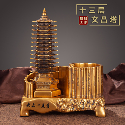 13十三层文昌塔笔筒摆件仿铜金工艺品九层办公书房书桌装饰送孩子