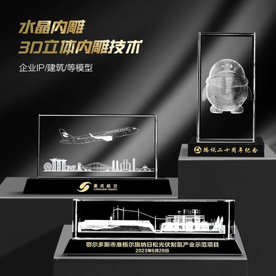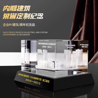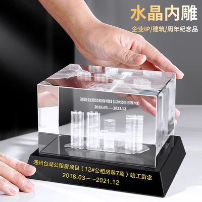 水晶内雕纪念品激光3d单位大楼雕刻摆台公司学校建筑模型摆件