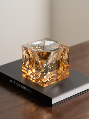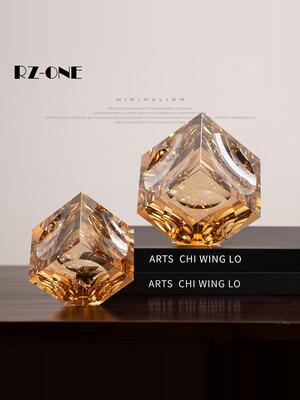 高级感水晶几何实心方块琥珀玻璃摆件现代轻奢客厅设计师软装饰品