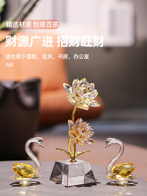 K9水晶花莲花天鹅客厅卧室书桌摆件装饰轻奢高档家居乔迁开业礼物