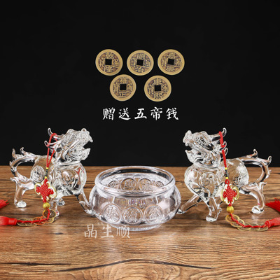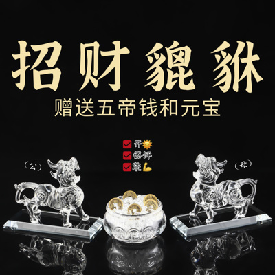 水晶貔貅招财摆件一对透明色聚财皮丘客厅玄关店铺装饰品开业礼品