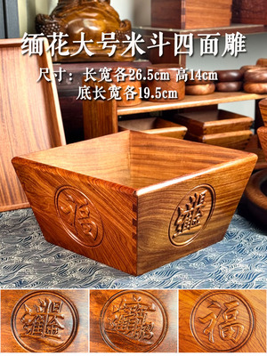 缅甸花梨红木日进斗金米斗实木独板仿古创意客厅装饰摆件开业送礼