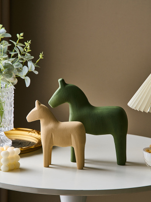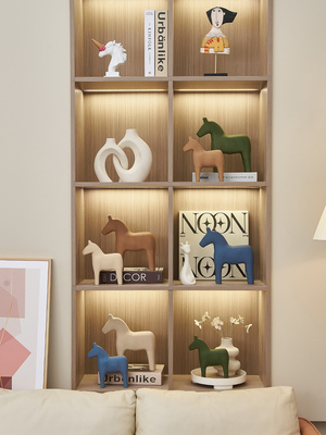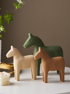 原木风文艺小木马小摆件客厅玄关电视柜家居软装饰品搭配木质书架