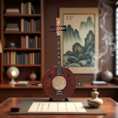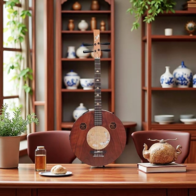 国风中式礼物摆件挂件装饰背景玄关茶室高端木制禅意阮咸琴仿唐阮