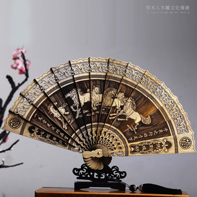 金丝楠木扇子折扇香木古典中国风折叠装饰镂空雕刻工艺品中式摆件