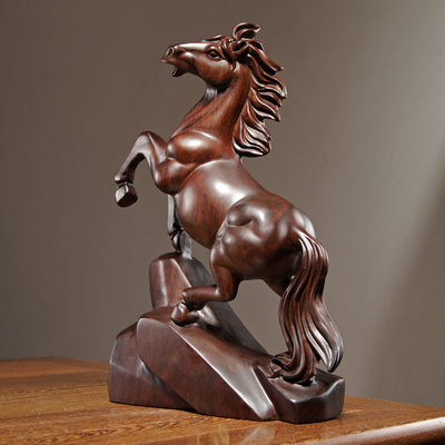 黑檀木雕生肖马摆件实木马到成功家居书房办公桌面装饰红木工艺品