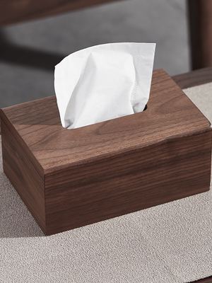 黑胡桃木纸巾盒实木客厅纸抽盒木质收纳抽轻奢家用餐巾纸盒定logo