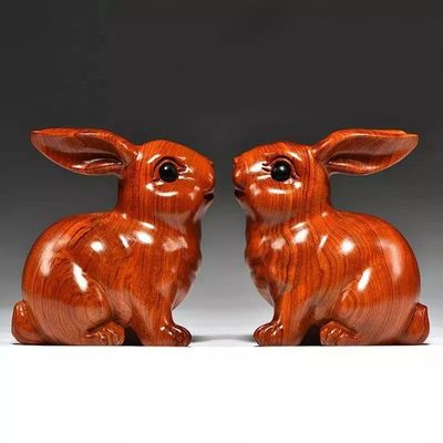 绿色木质雕刻兔子摆件三合十二生肖木兔家居电视柜装饰品开业送礼