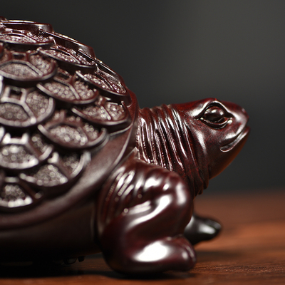 黑檀木雕金钱龟摆件实木乌龟雕刻家居客厅玄关装饰办公室桌面摆设