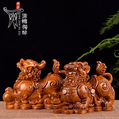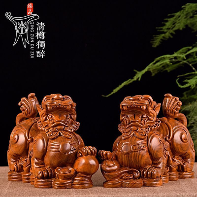 (实木招财礼品)黑檀实木质雕刻一对猪摆件三合十二生肖动物猪家
