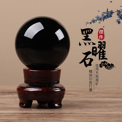天然黑曜石水晶球摆件黑色大号原石打磨客厅办公室玄关工艺品装饰