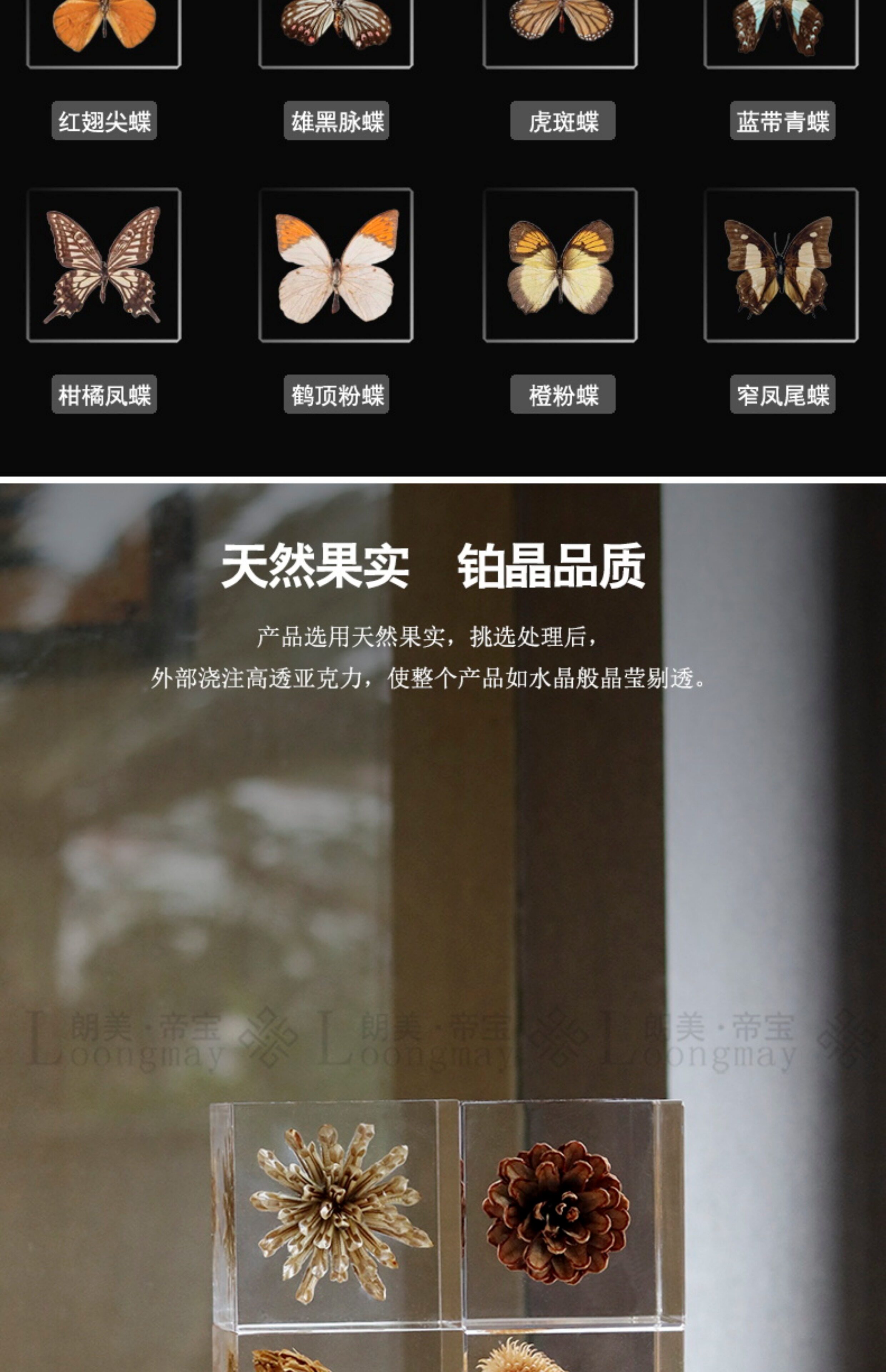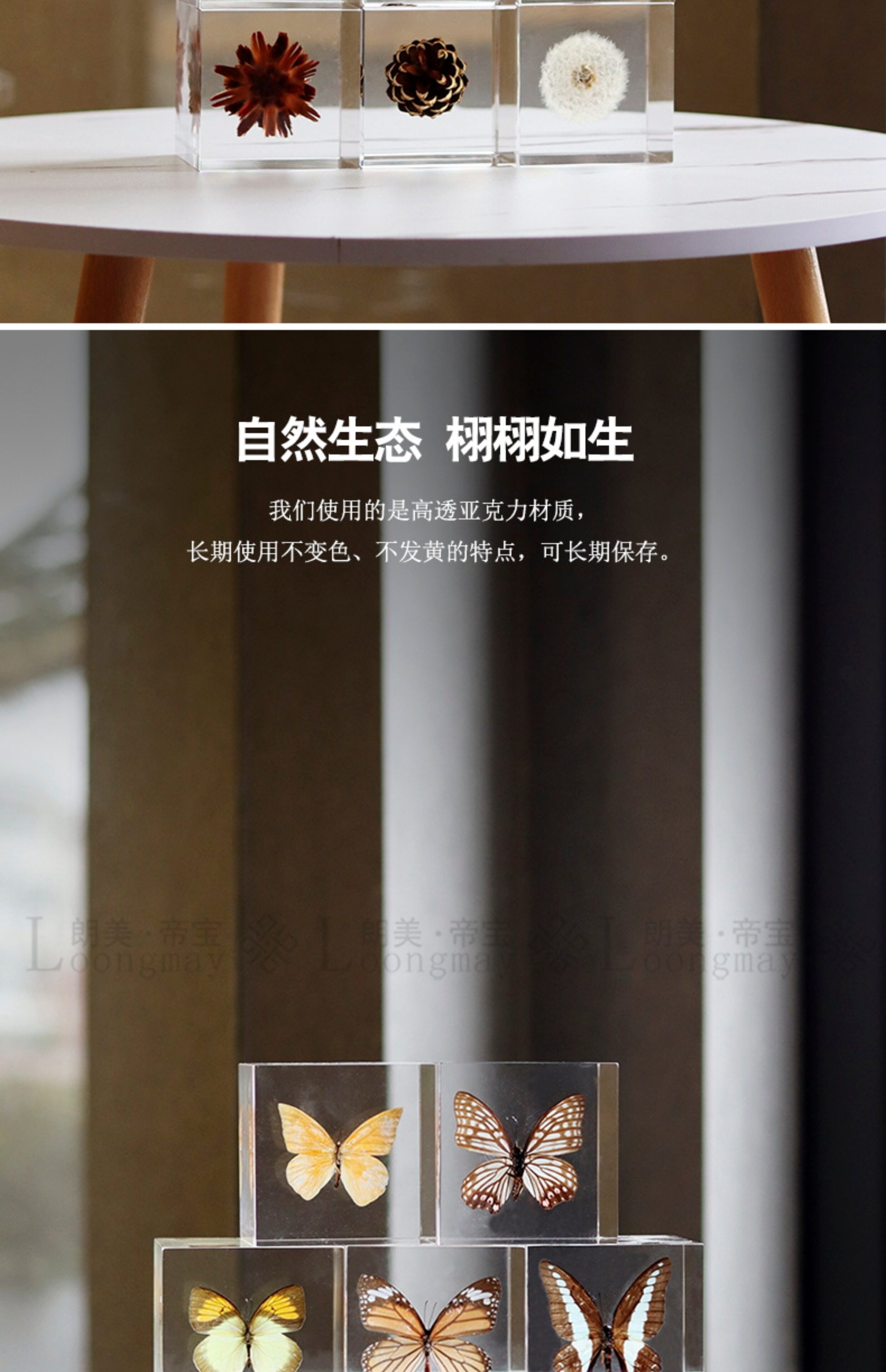 商品名称:植物标本蒲公英蝴蝶透明摆件客厅书房现代轻奢树脂设计师软装饰品