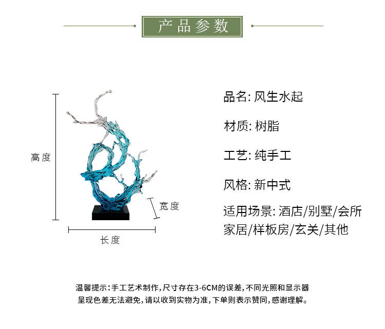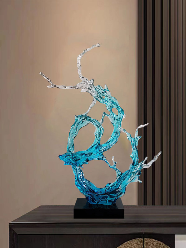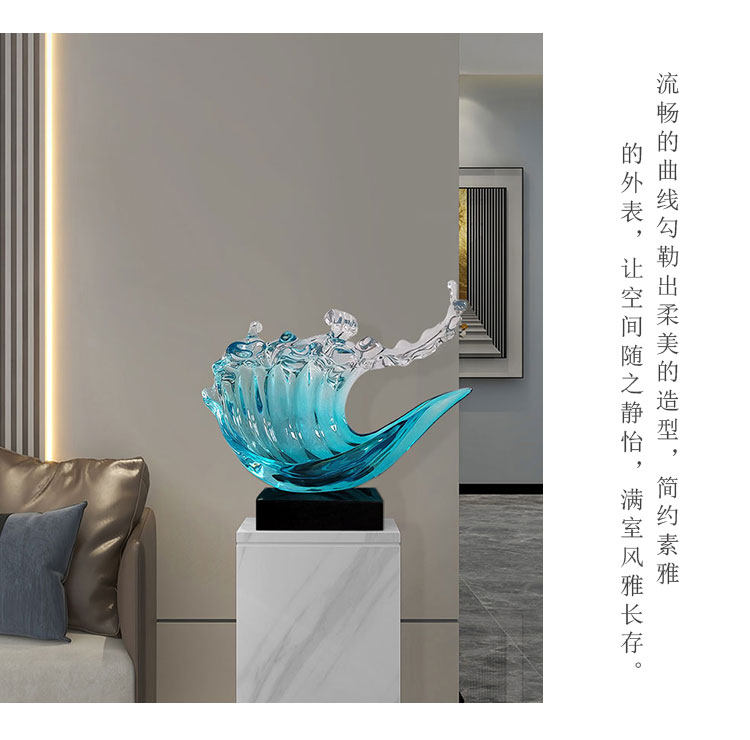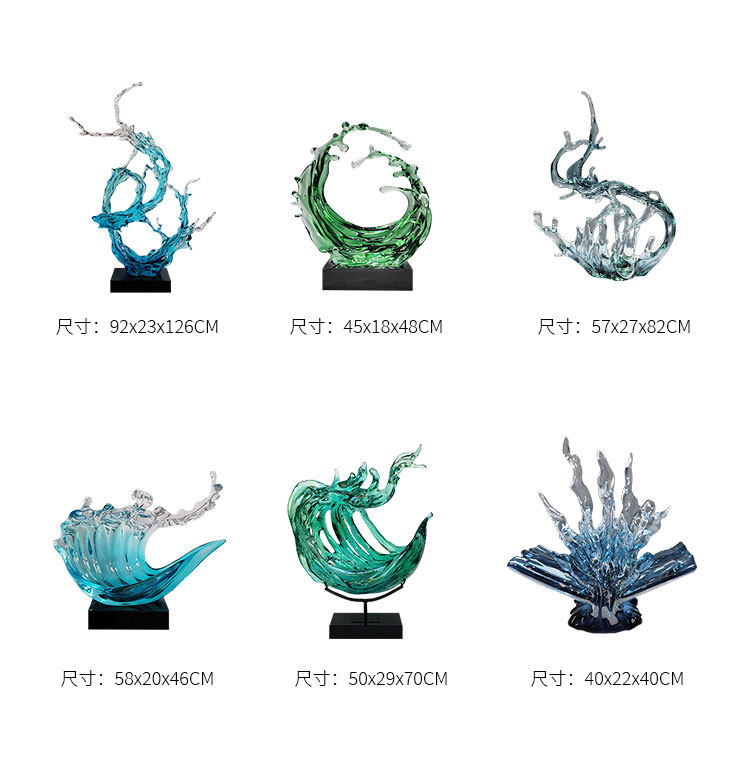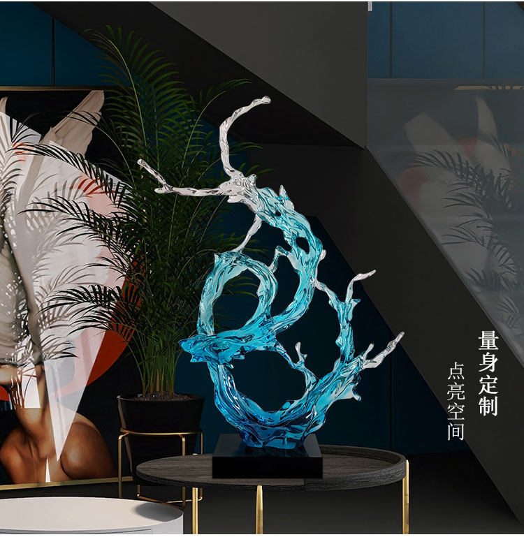 商品名称:酒店大堂轻奢透明水花树脂摆件售楼处样板间落地雕塑软装饰艺术品