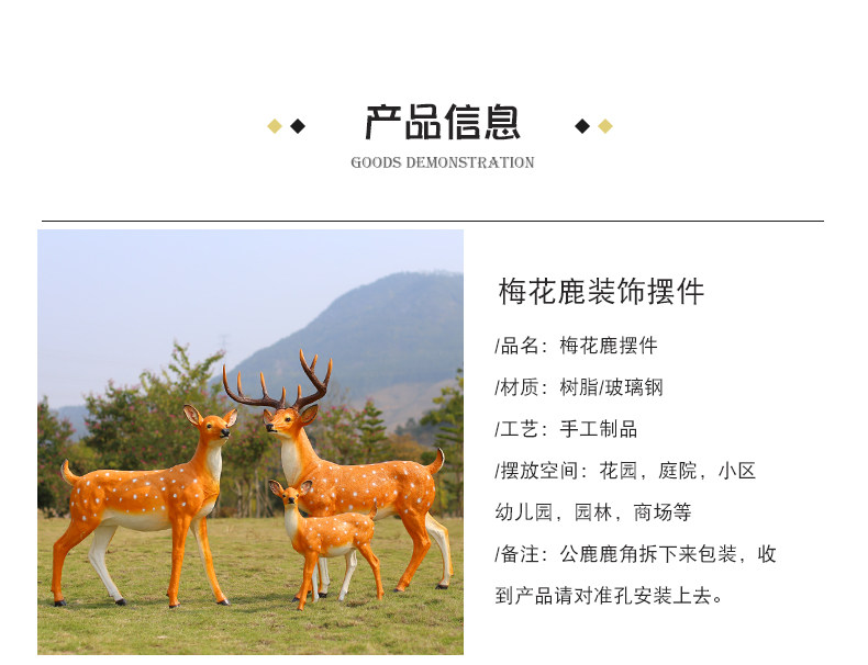 商品名称:仿真梅花鹿雕塑小鹿摆件树脂玻璃钢动物花园庭院子景观装饰幼儿园