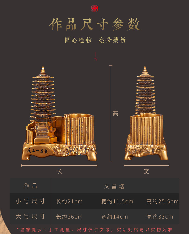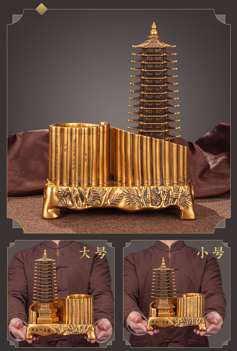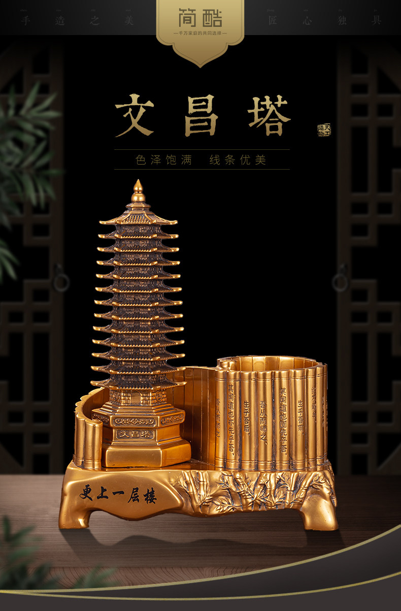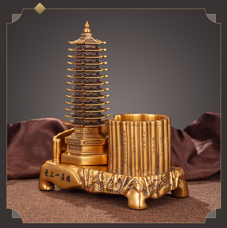 商品名称:13十三层文昌塔笔筒摆件仿铜金工艺品九层办公书房书桌装饰送孩子