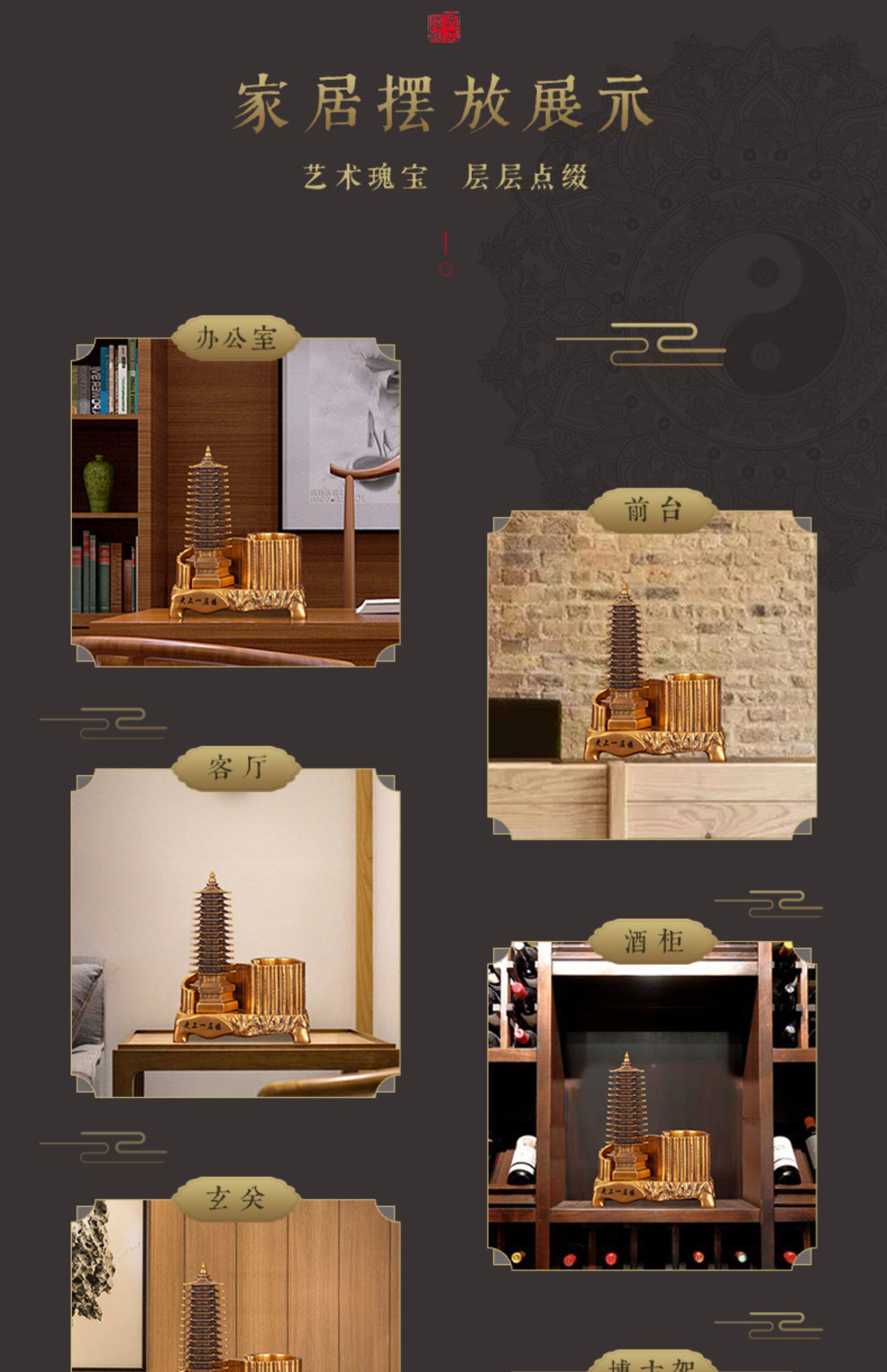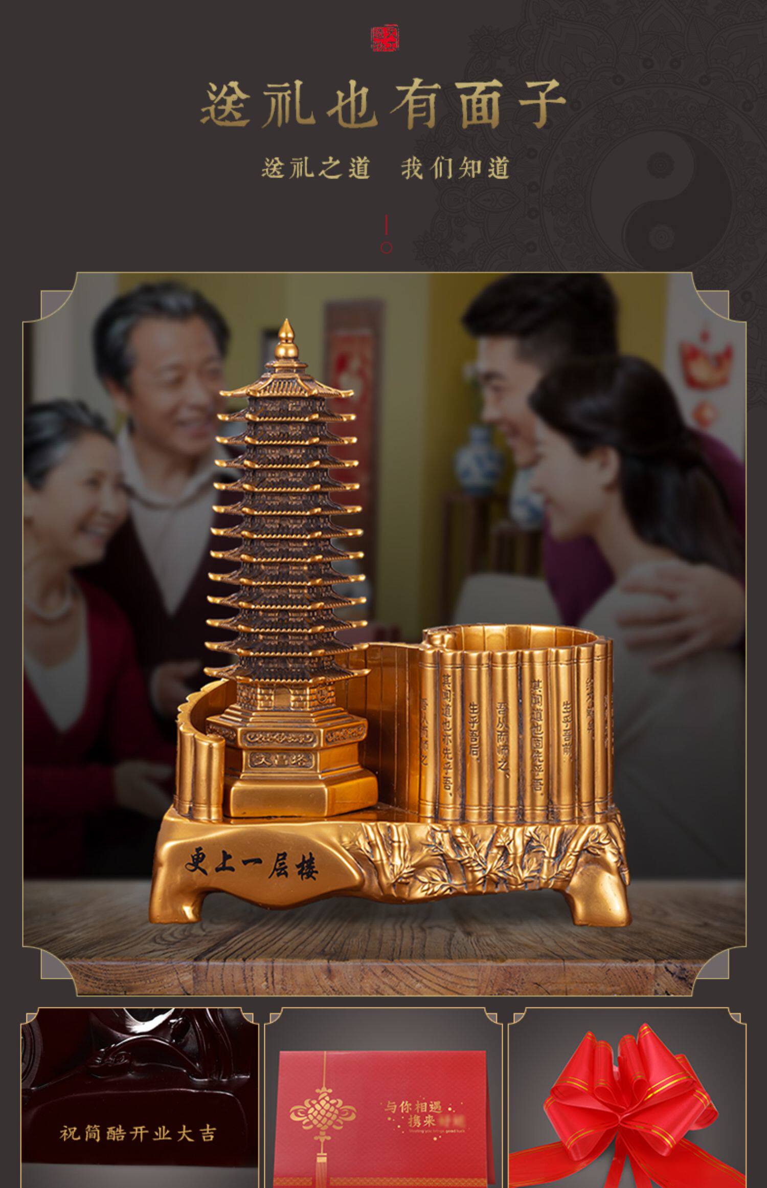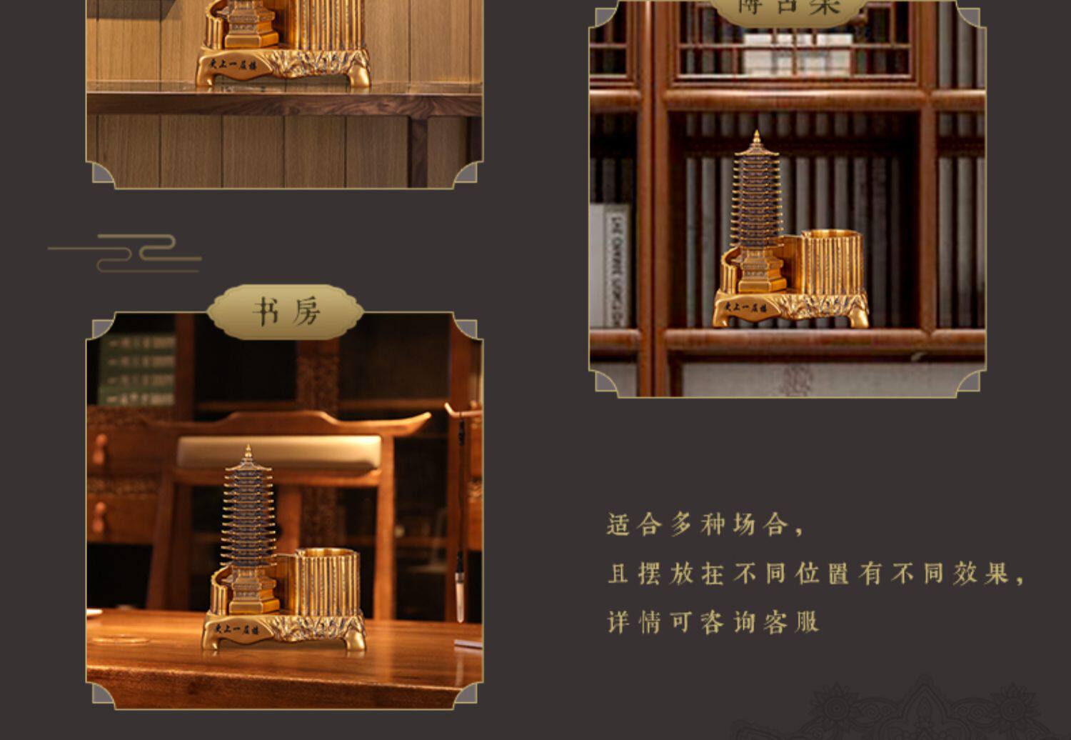 商品名称:13十三层文昌塔笔筒摆件仿铜金工艺品九层办公书房书桌装饰送孩子