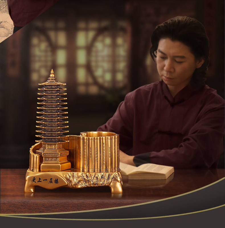 13十三层文昌塔笔筒摆件仿铜金工艺品九层办公书房书桌装饰送孩子