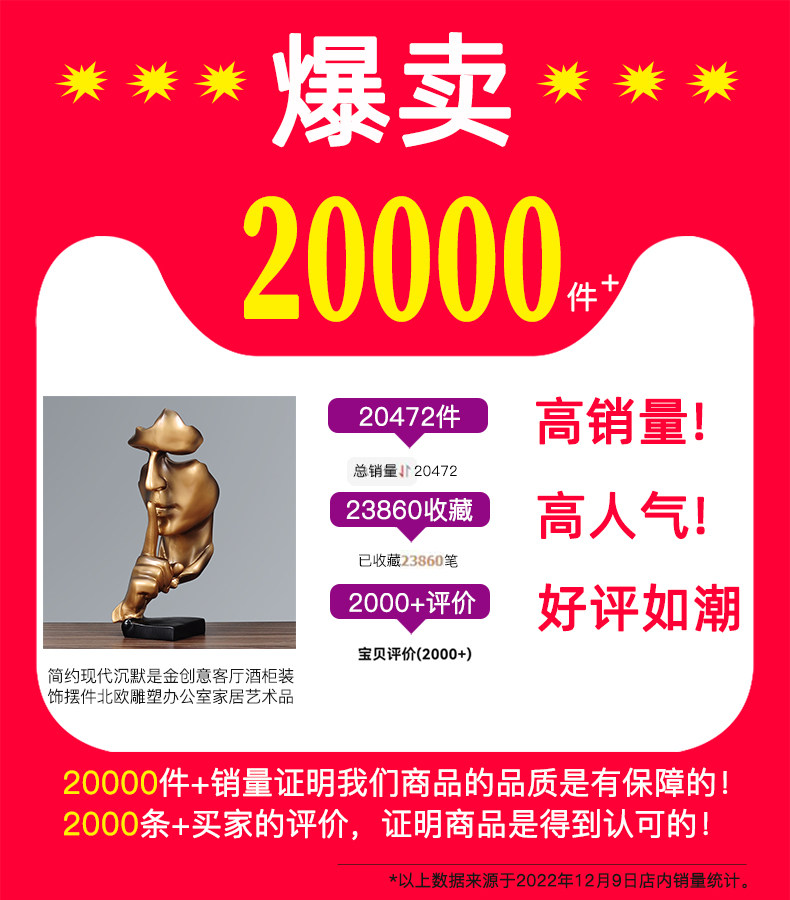 商品名称:简约现代沉默是金创意客厅酒柜装饰摆件北欧雕塑办公室家居艺术品