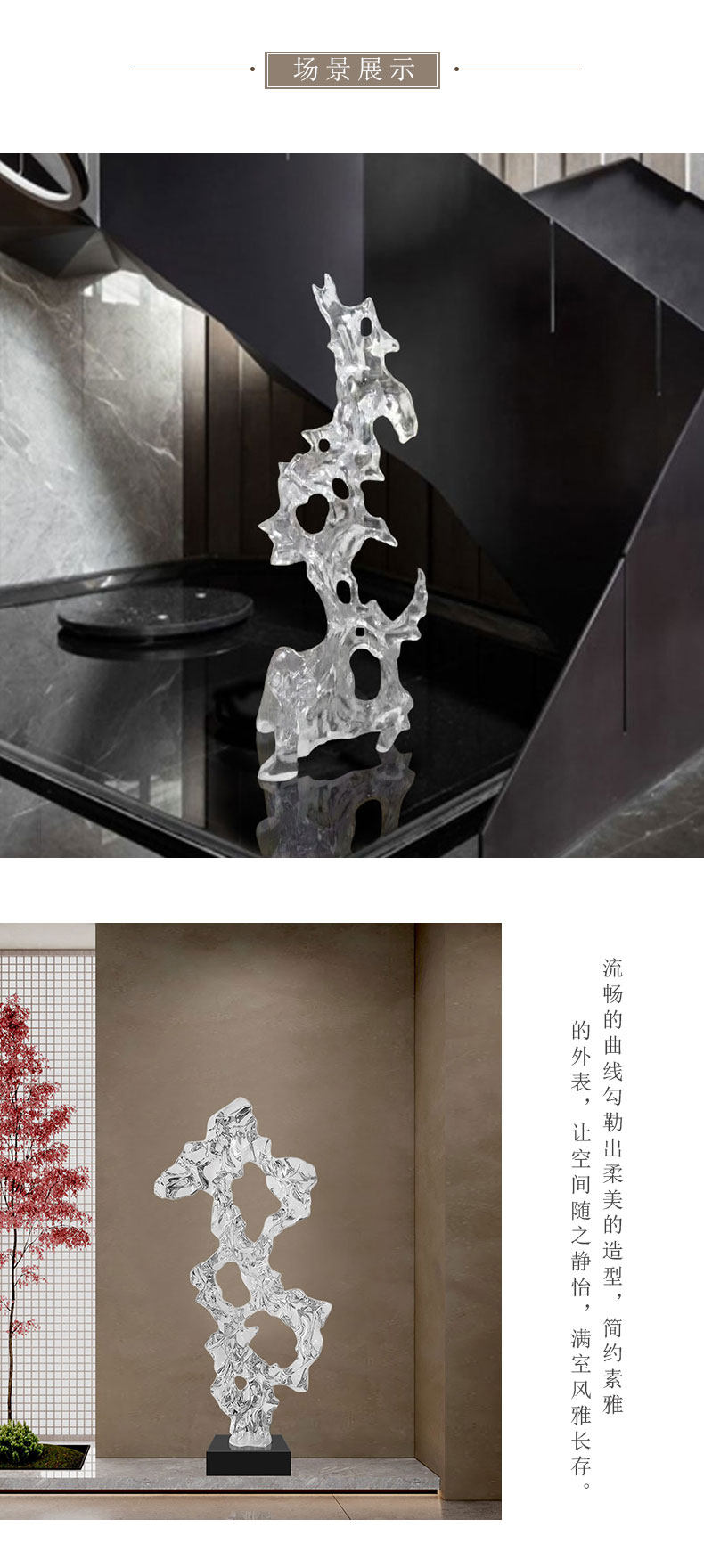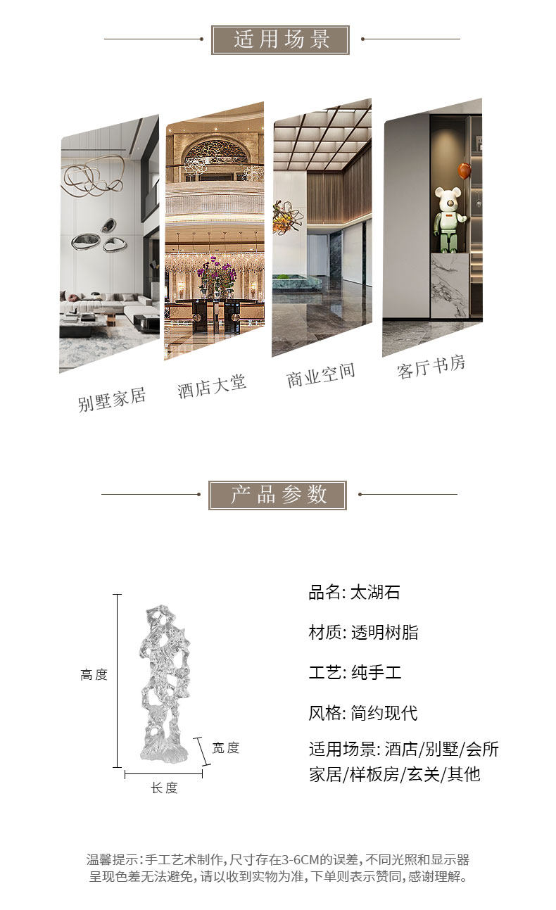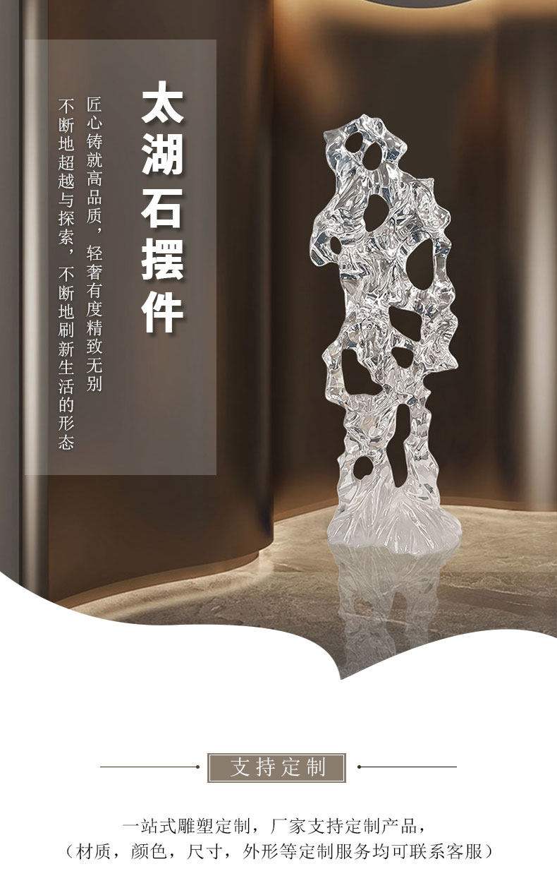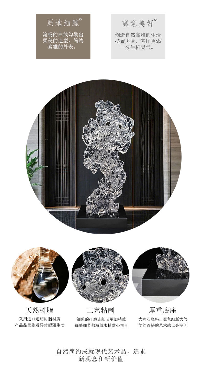 商品名称:透明树脂太湖石雕塑大型落地摆件现代简约酒店售楼处软装饰工艺品