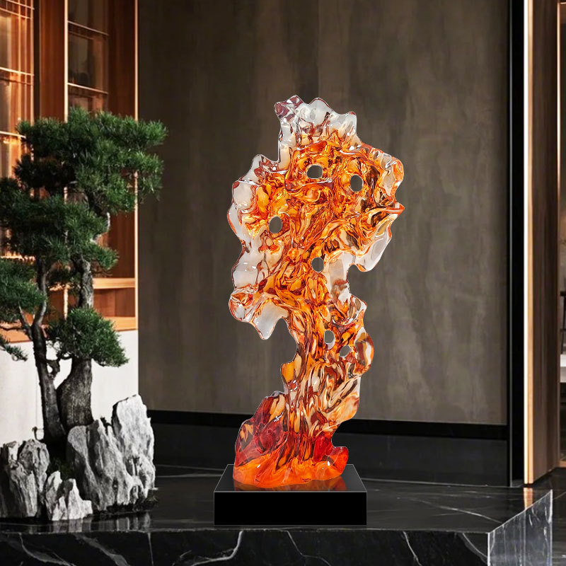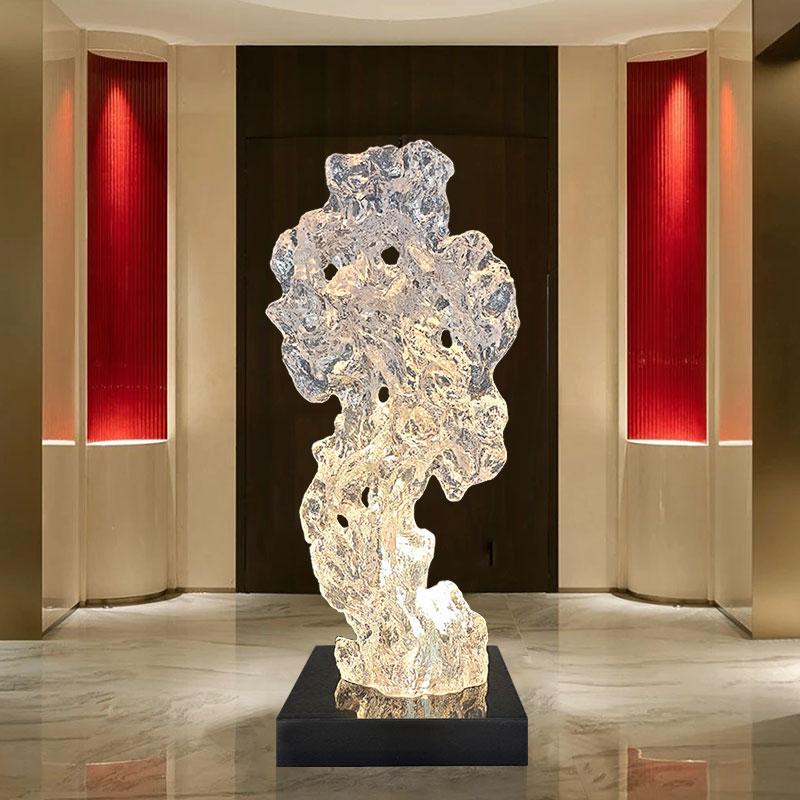 透明树脂太湖石雕塑大型落地摆件现代简约酒店售楼处软装饰工艺品