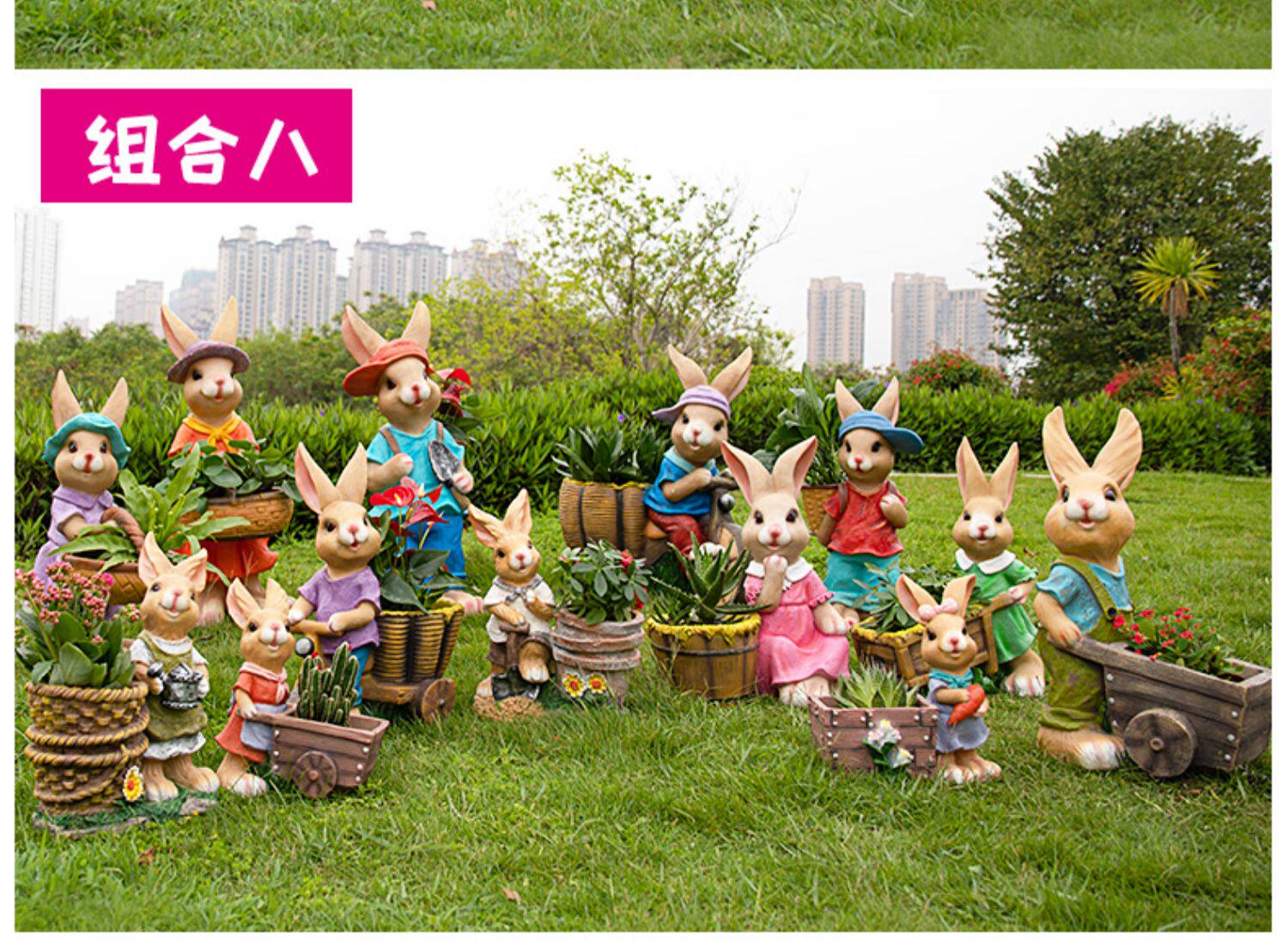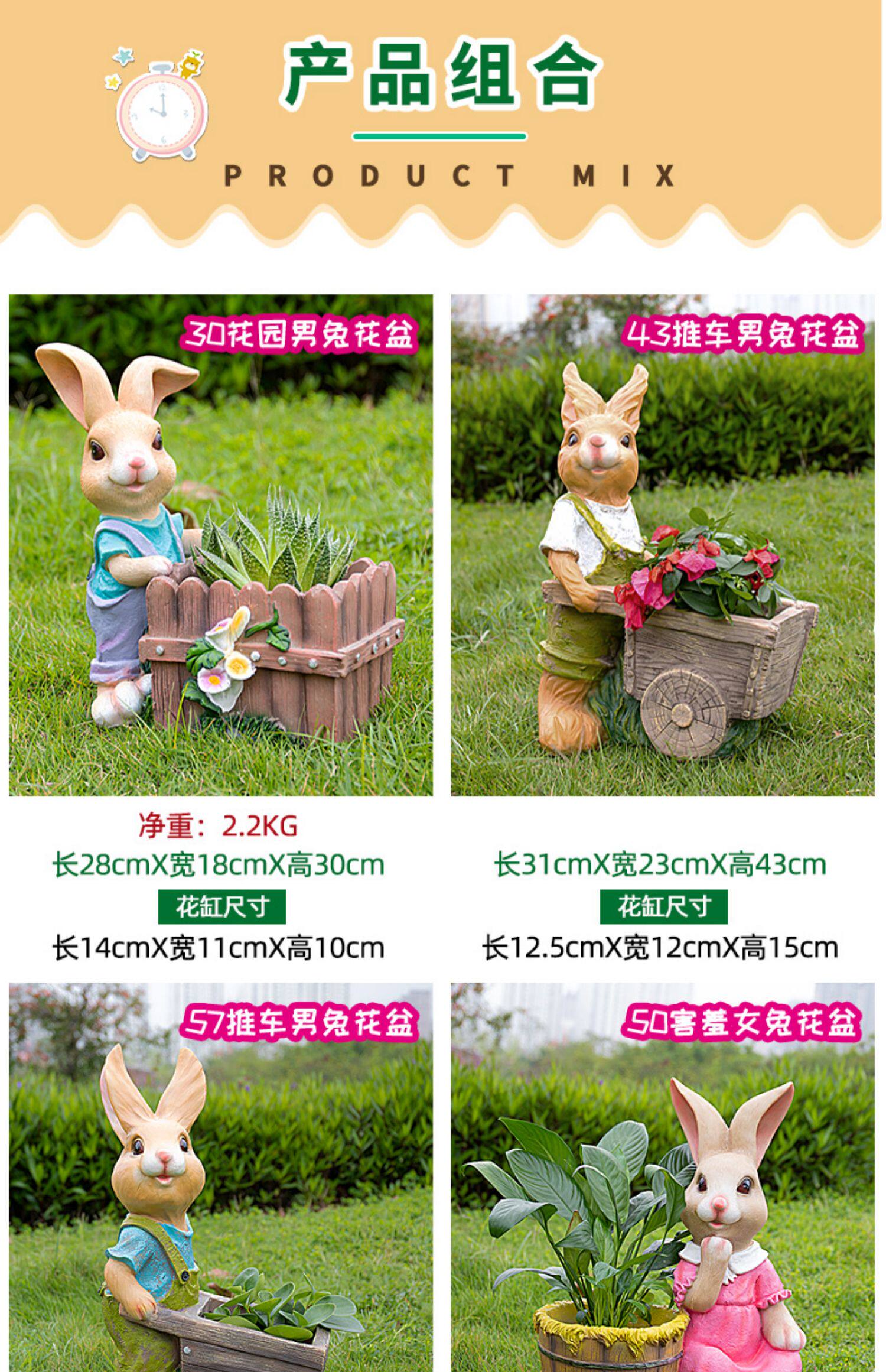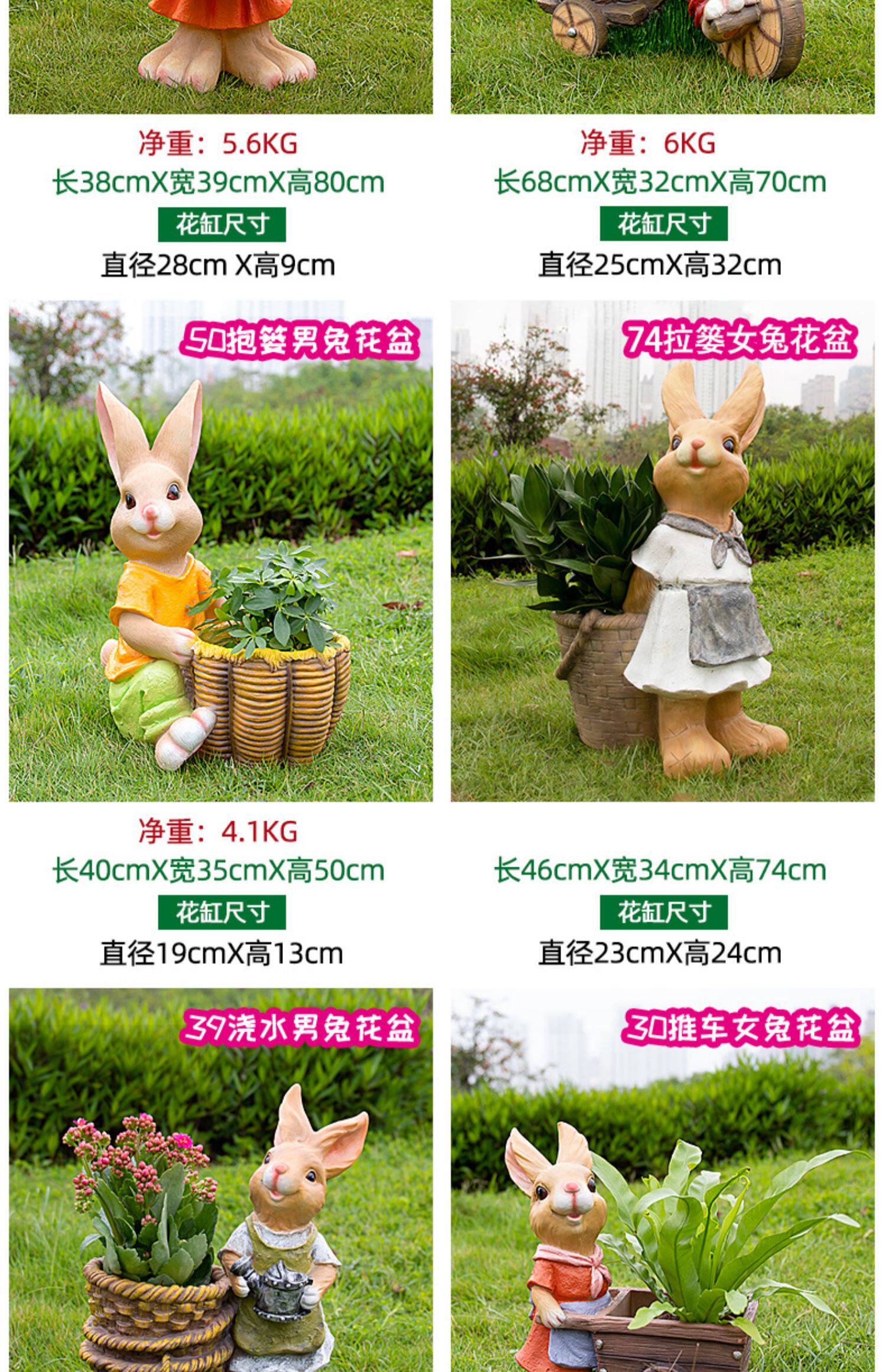商品名称:花园摆件卡通创意兔子花盆阳台庭院公园草丛景观装饰树脂小品