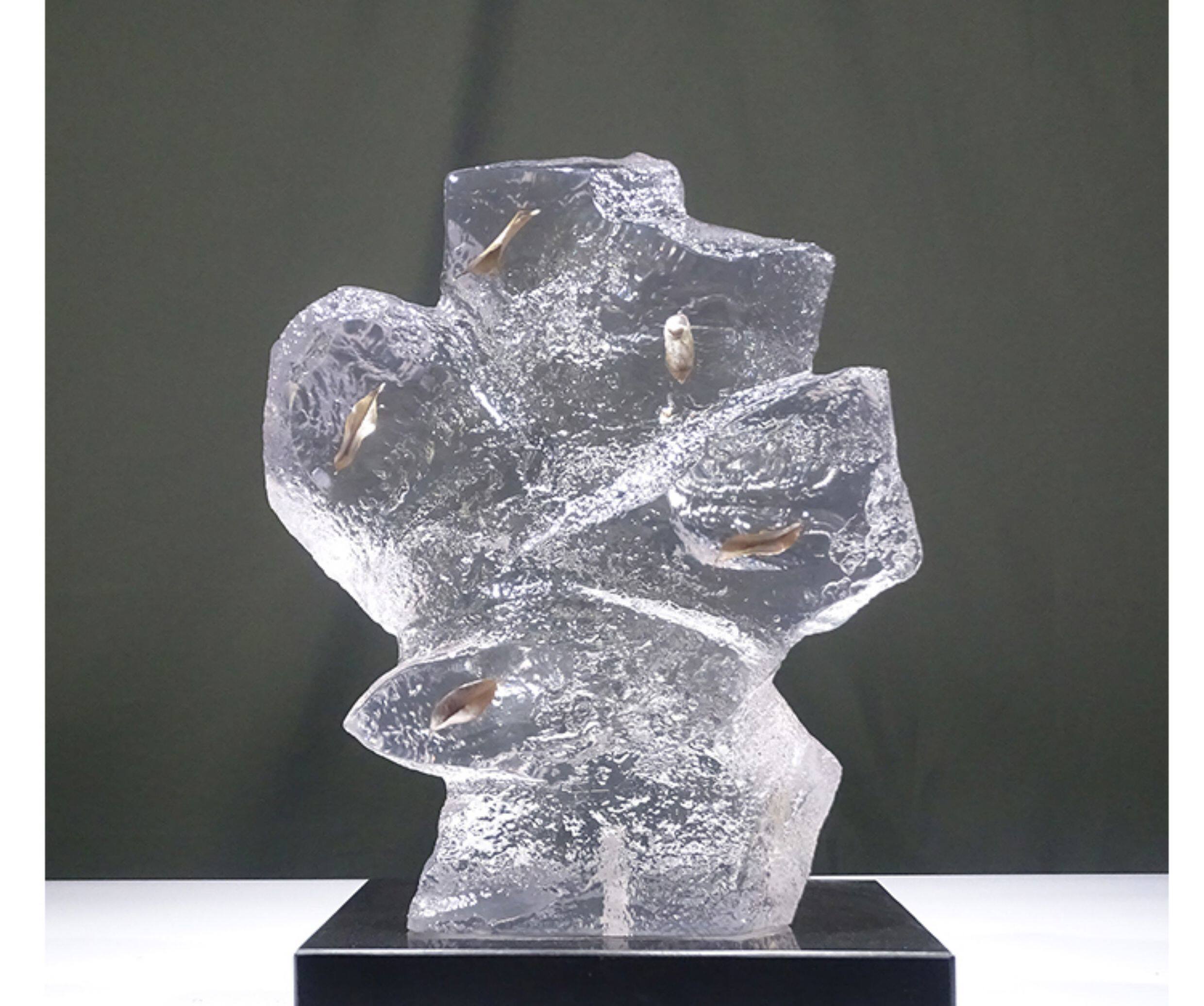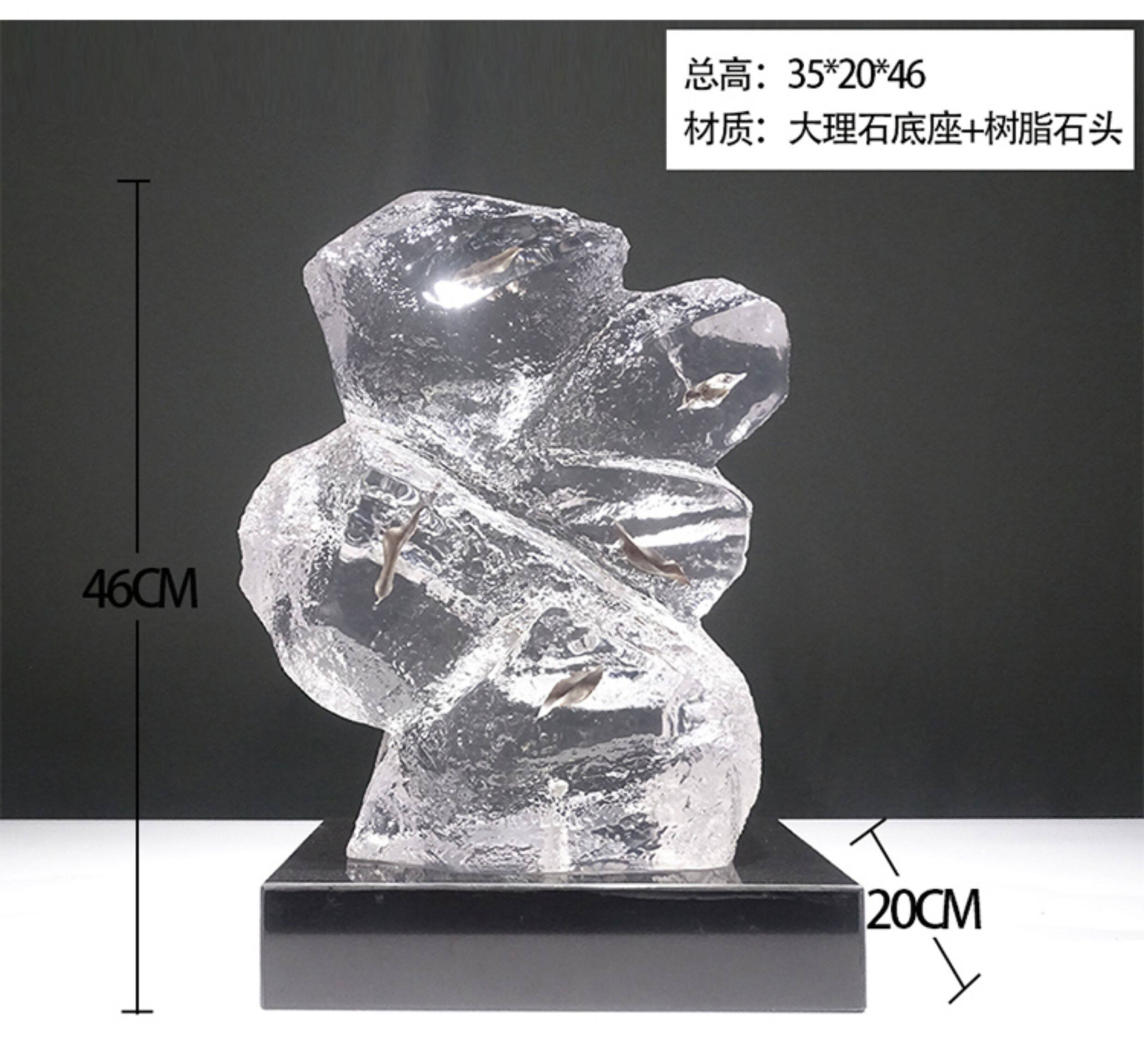 现代透明石头树脂雕塑桌面摆件客厅样板房酒店玄关软装饰工艺品