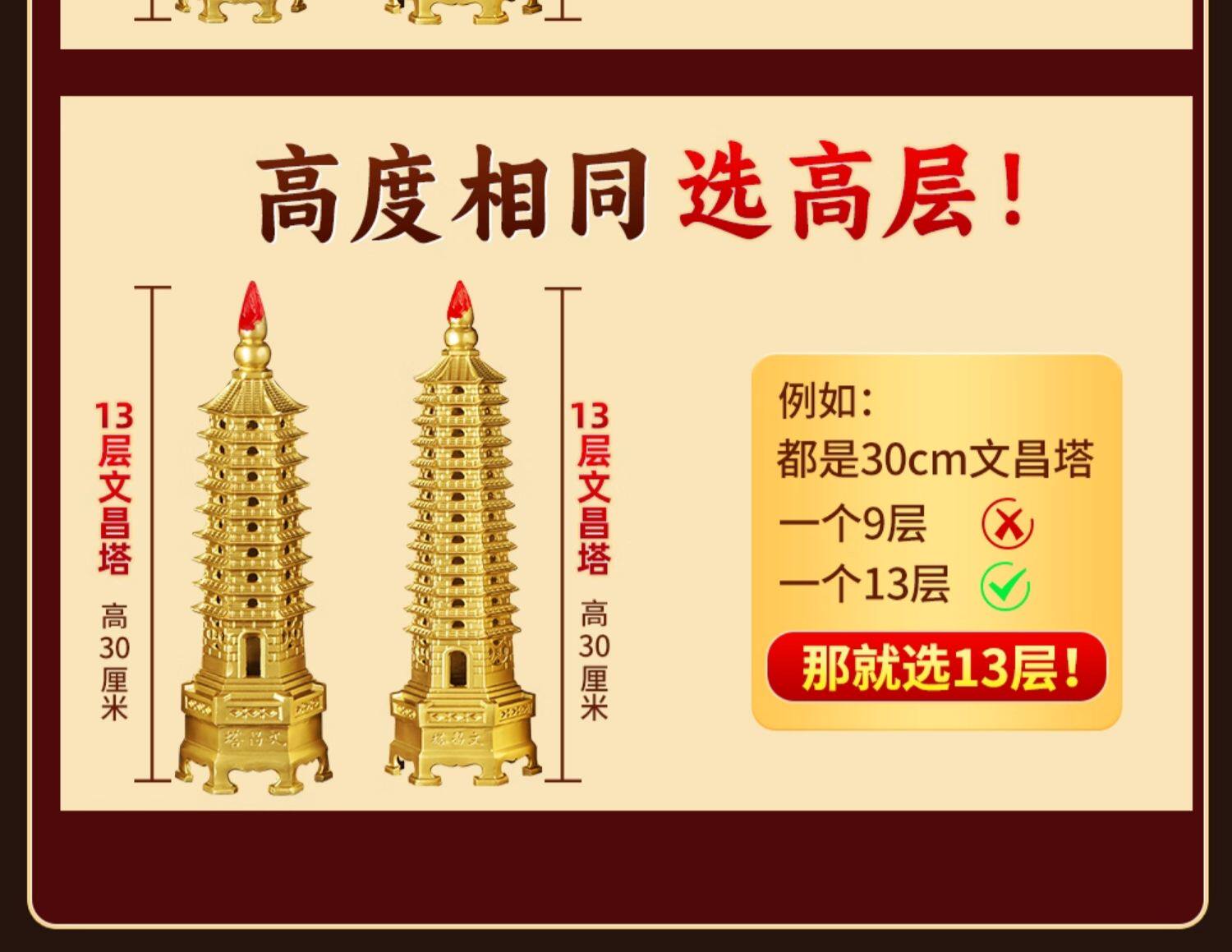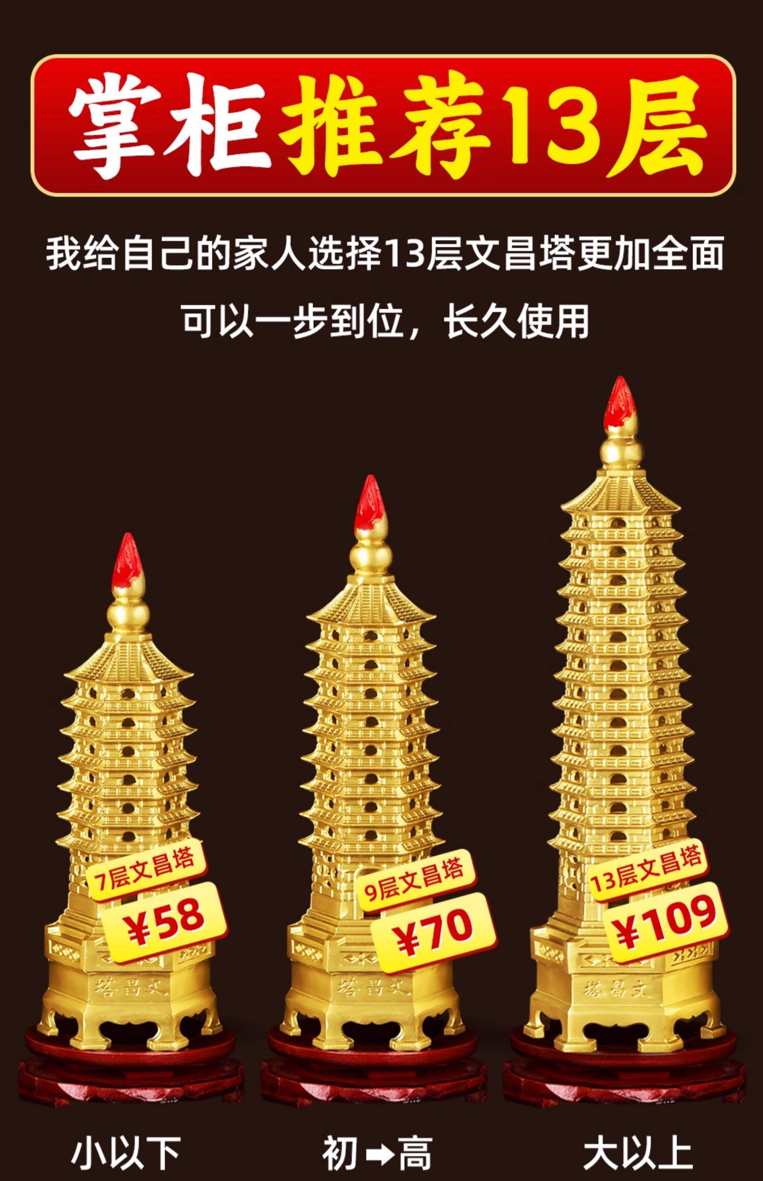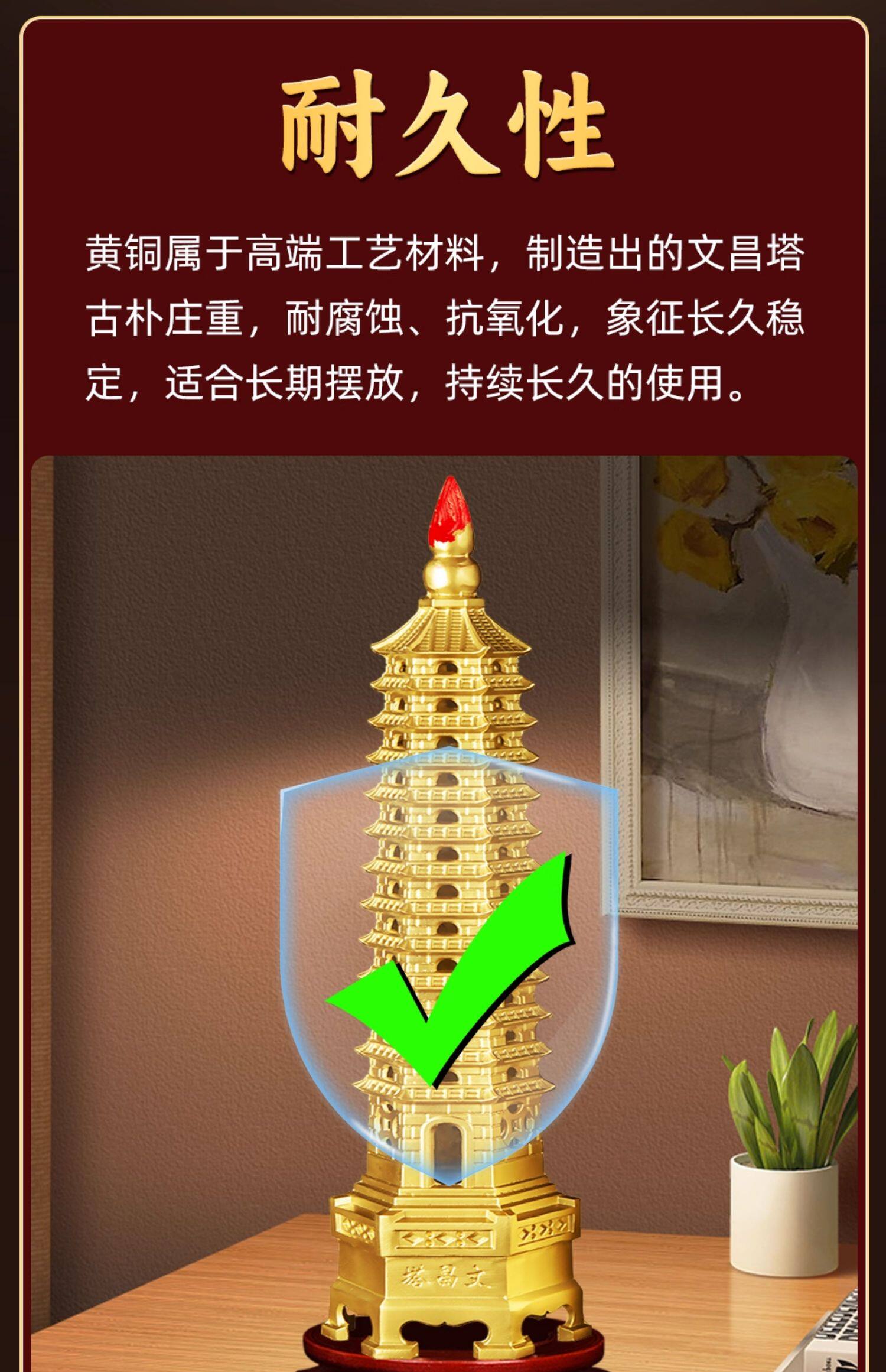 商品名称:文昌塔旗舰店纯黄铜摆件13层的十三九层9层工艺品质7办公室书房桌