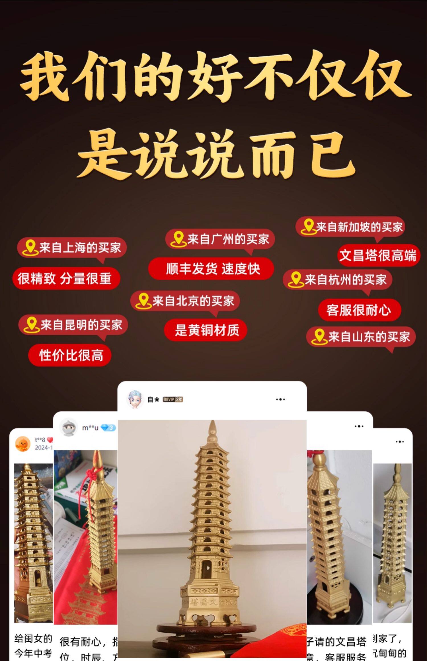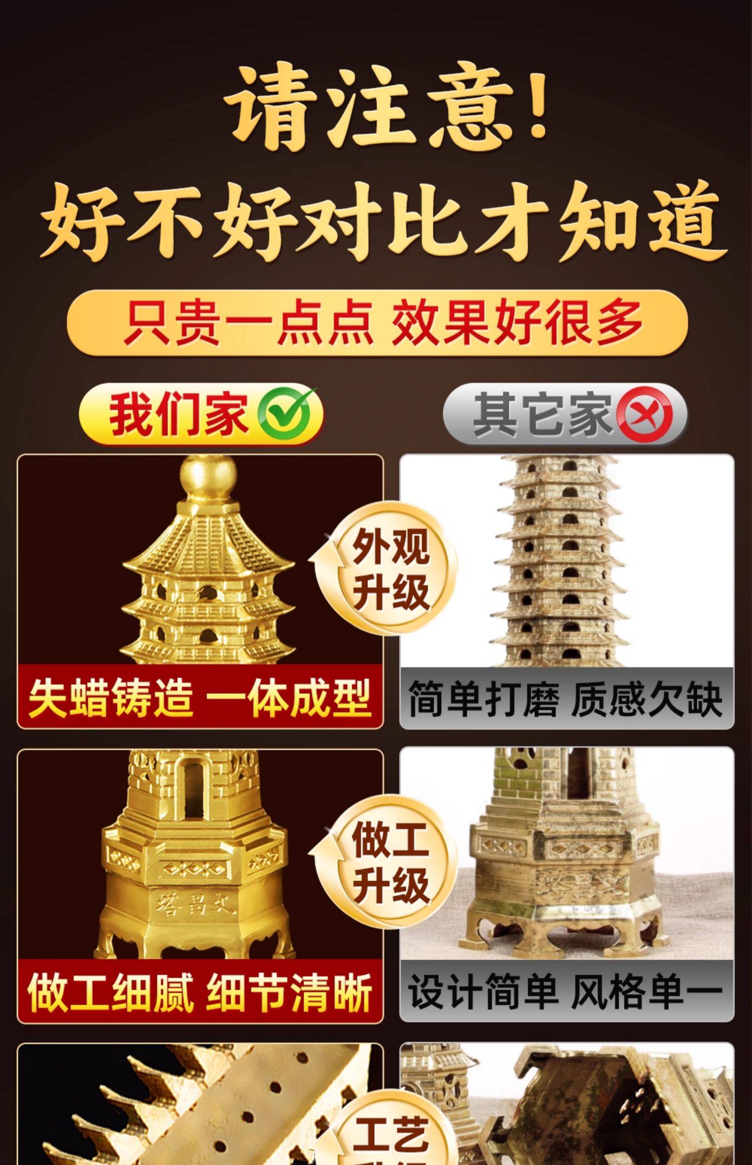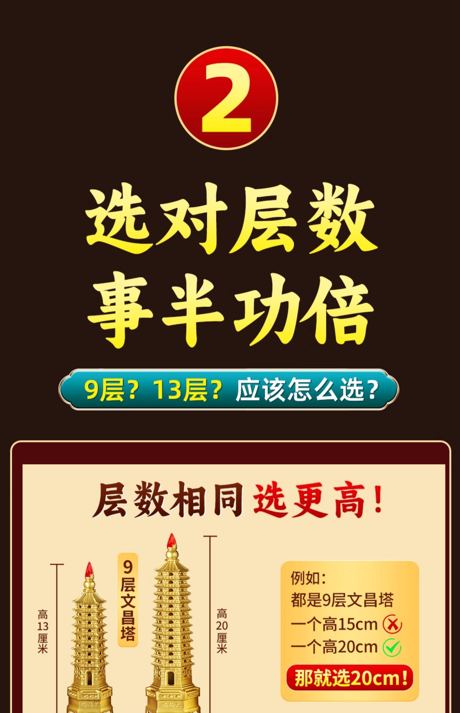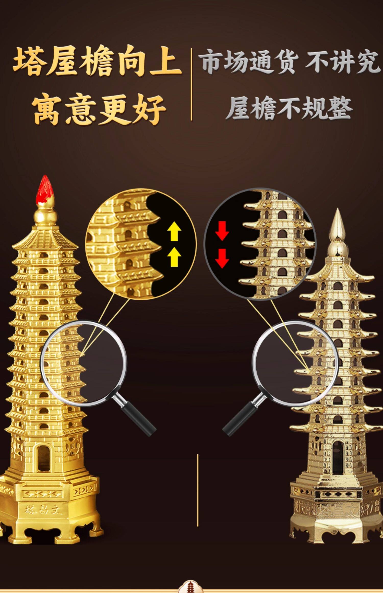 商品名称:文昌塔旗舰店纯黄铜摆件13层的十三九层9层工艺品质7办公室书房桌