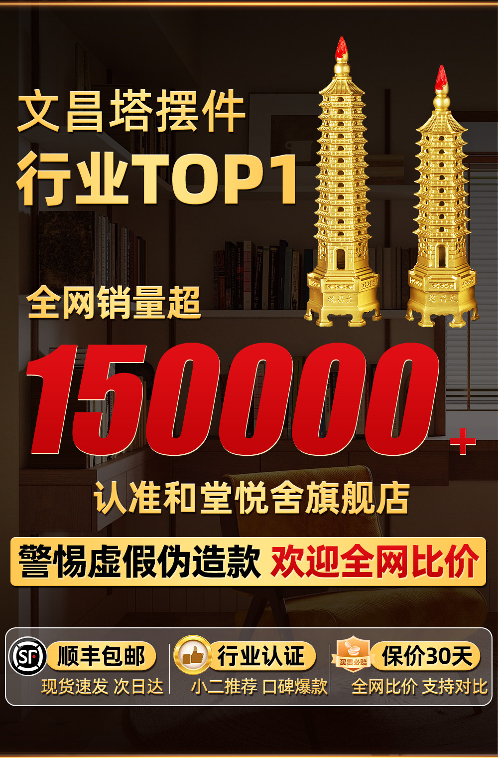 文昌塔旗舰店纯黄铜摆件13层的十三九层9层工艺品质7办公室书房桌