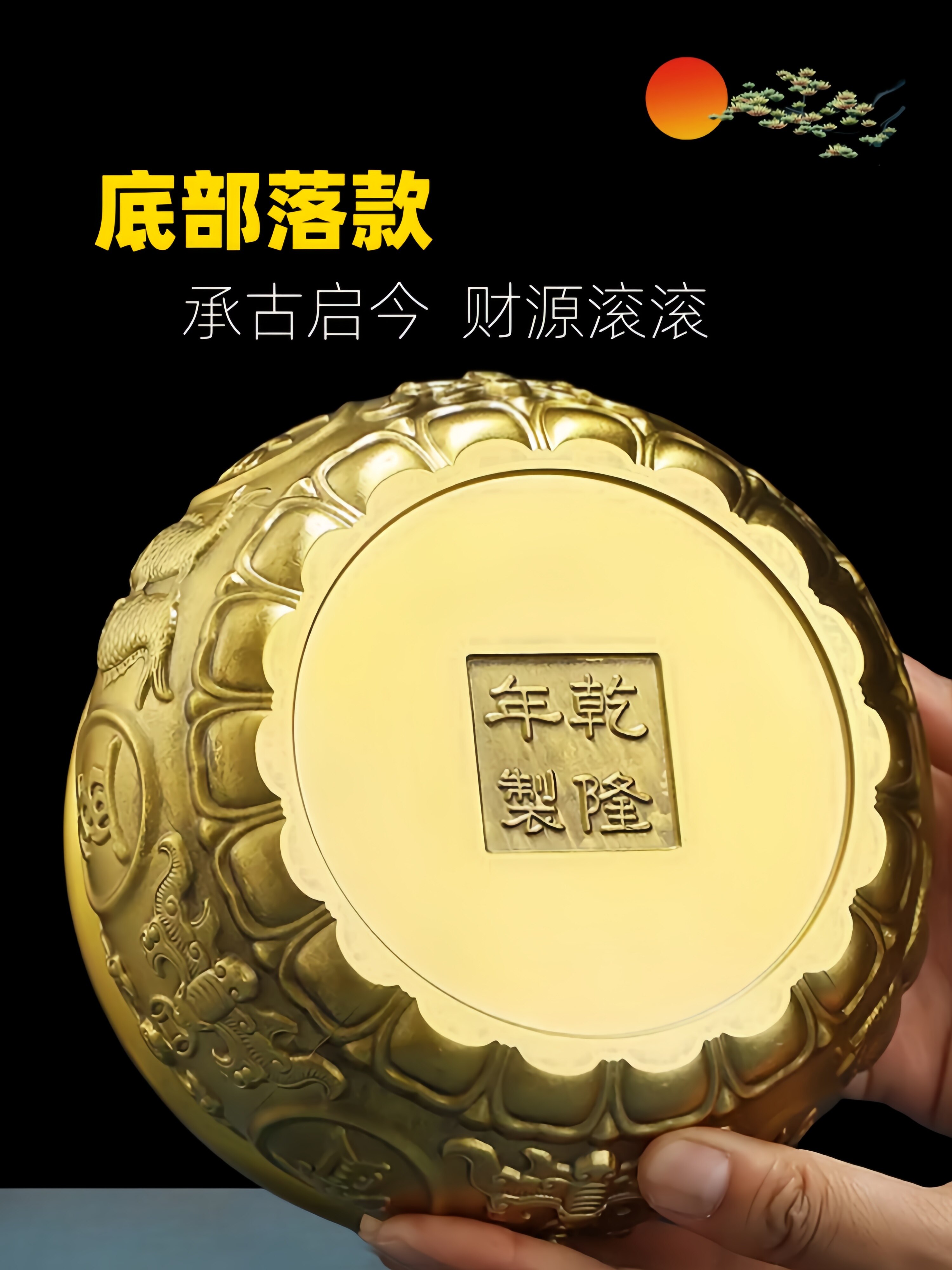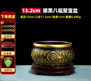 【擦黑】八福聚宝盆 直径13厘米 送底座+五帝钱等