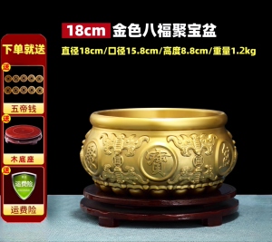 【金色】八福聚宝盆 直径18厘米 送底座+五帝钱等
