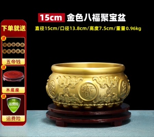 【金色】八福聚宝盆 直径15厘米 送底座+五帝钱等
