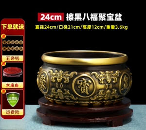【擦黑】八福聚宝盆 直径24厘米 送底座+五帝钱等