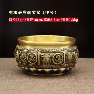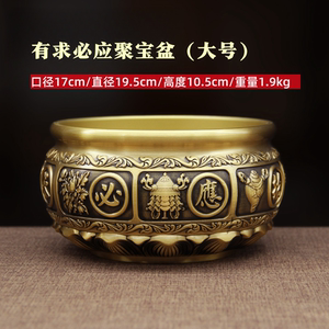 纯黄铜聚宝盆招聚财结婚乔迁新居礼品摆件装饰品黄铜米缸存钱罐客