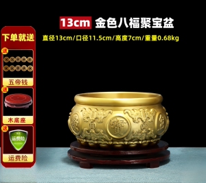 【金色】八福聚宝盆 直径13厘米 送底座+五帝钱等