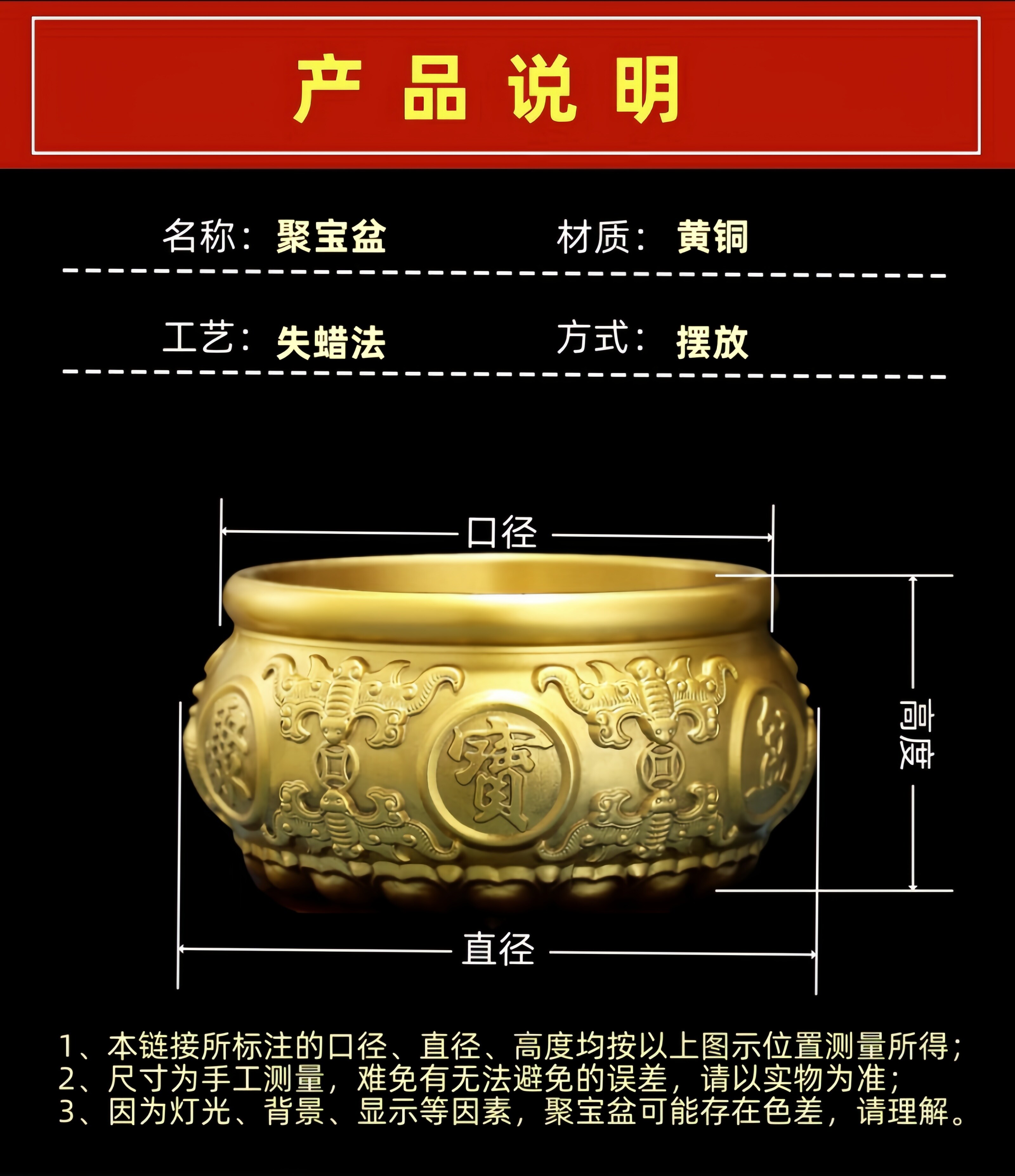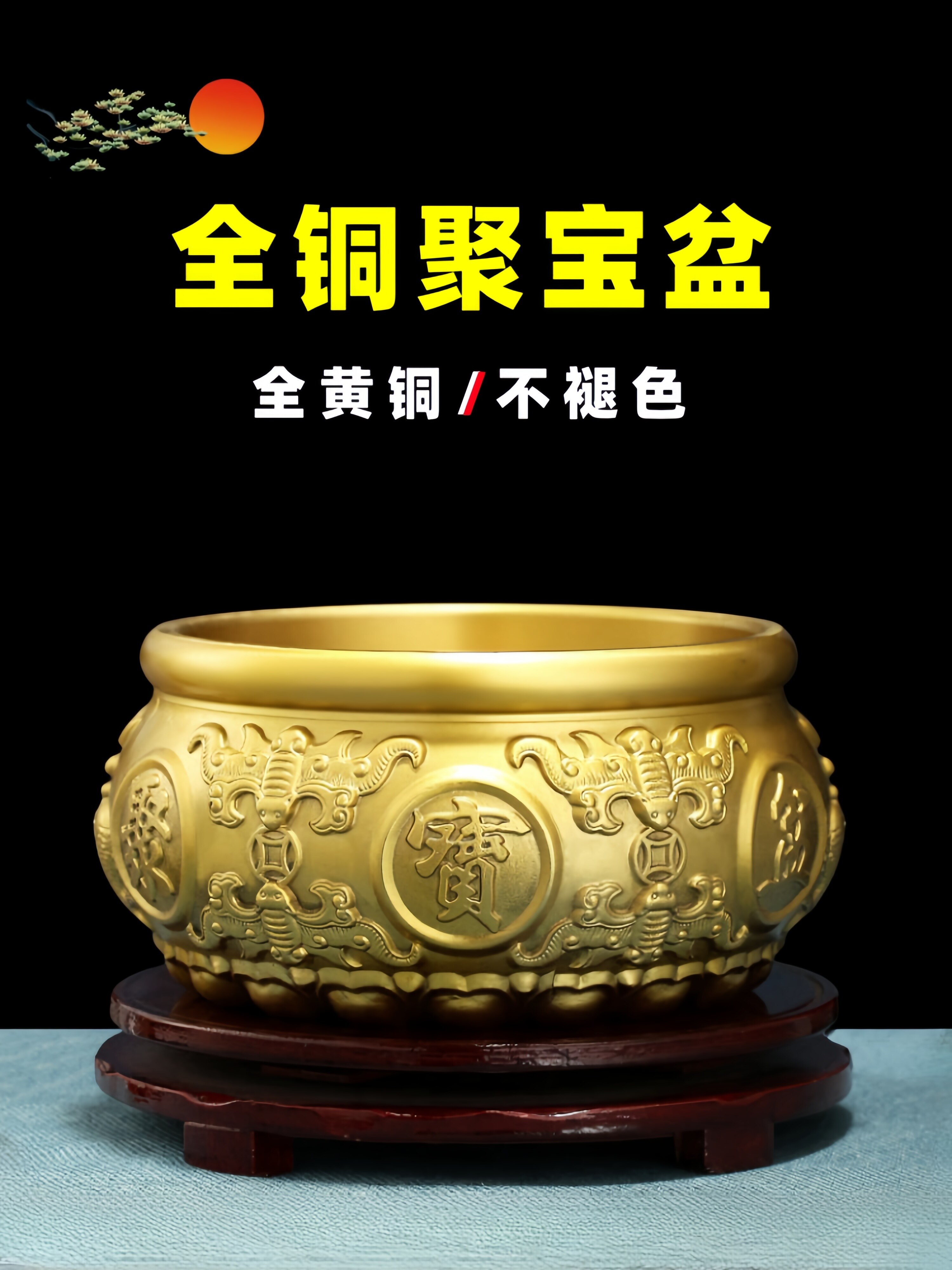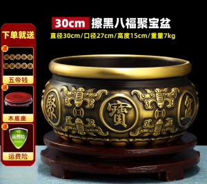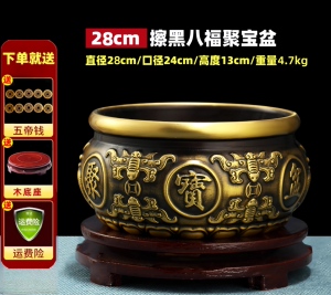 【擦黑】八福聚宝盆 直径27厘米 送底座+五帝钱等