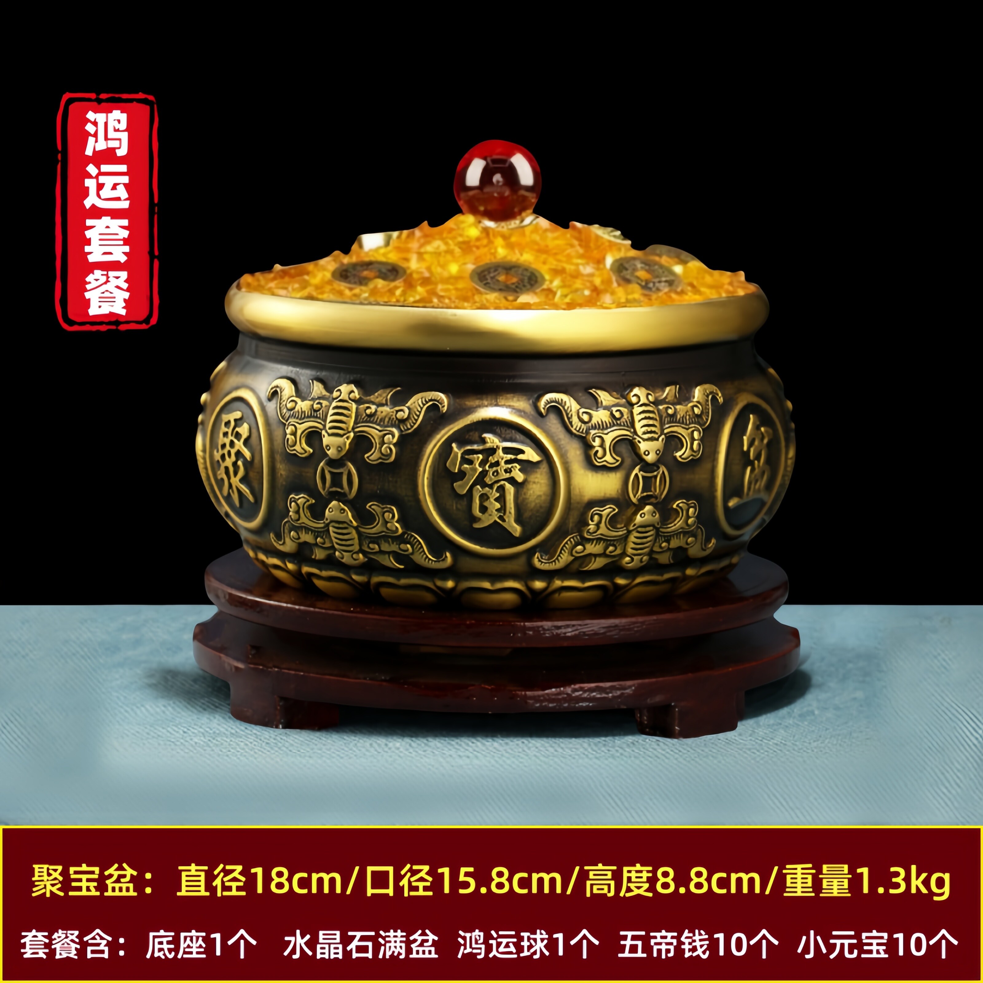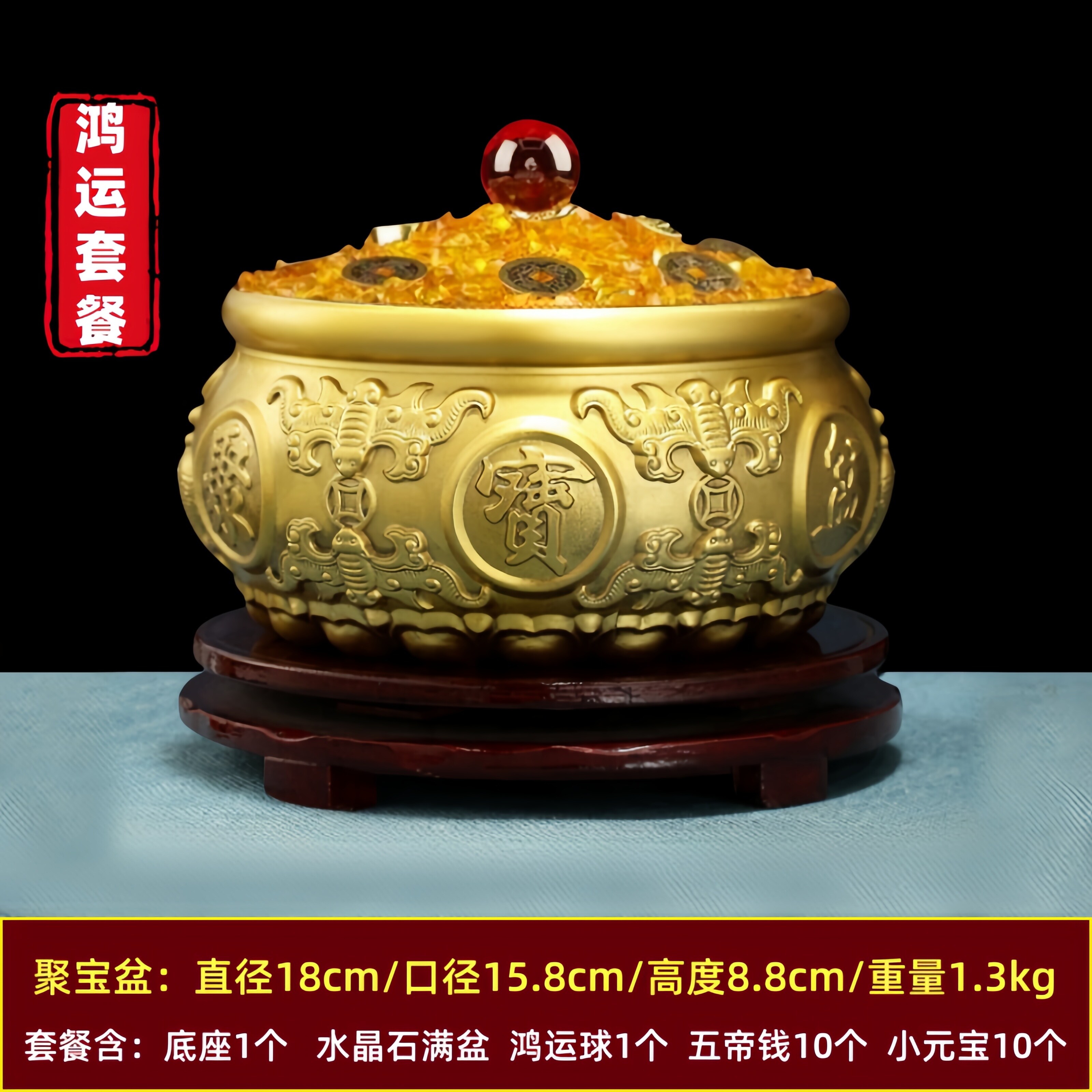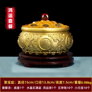 【金色套餐】八福聚宝盆 直径15厘米 +满盆水晶石套餐