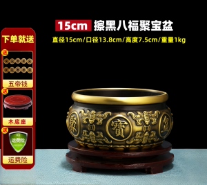 【擦黑】八福聚宝盆 直径15厘米 送底座+五帝钱等
