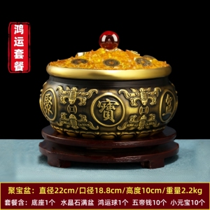 【金色套餐】八福聚宝盆 直径22厘米 +满盆水晶石套餐