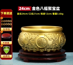 【金色】八福聚宝盆 直径24厘米 送底座+五帝钱等