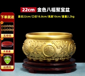 【金色】八福聚宝盆 直径22厘米 送底座+五帝钱等