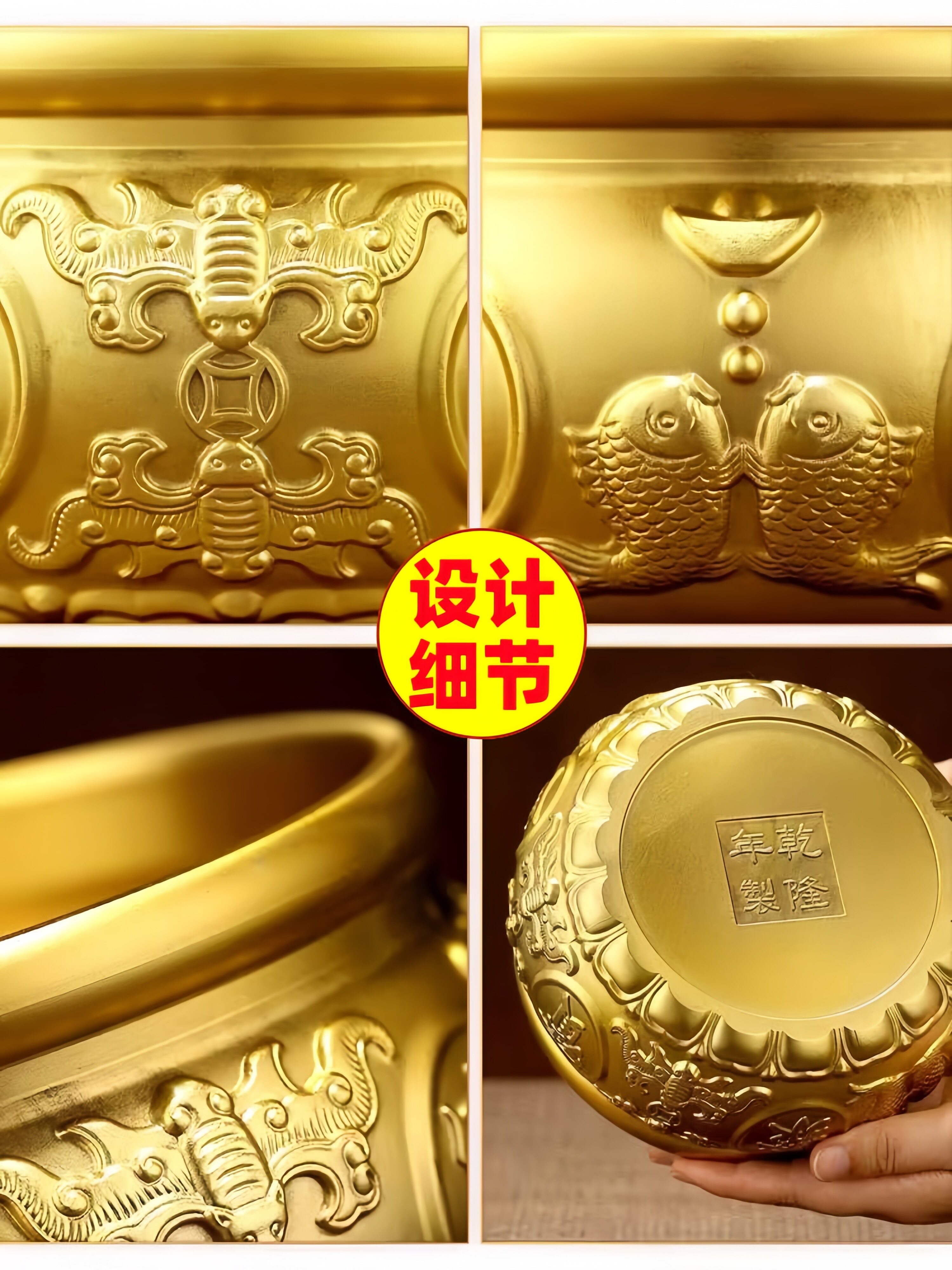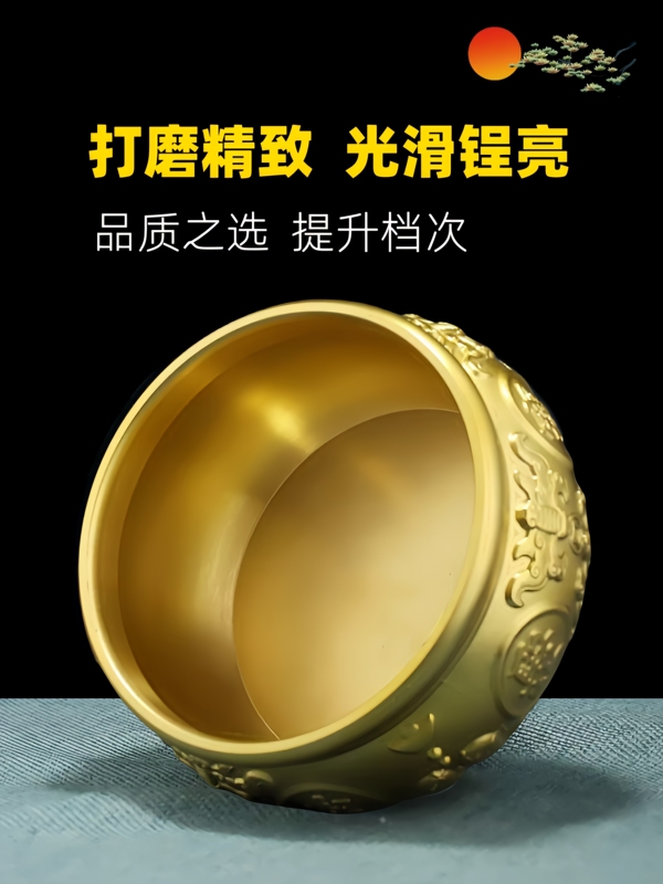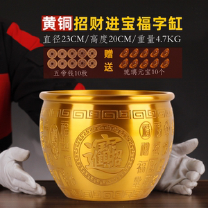 商品名称:纯黄铜聚宝盆招聚财结婚乔迁新居礼品摆件装饰品黄铜米缸存钱罐客