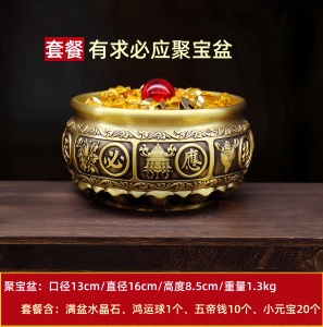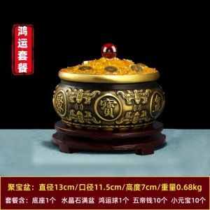 【金色套餐】八福聚宝盆 直径13厘米 +满盆水晶石套餐