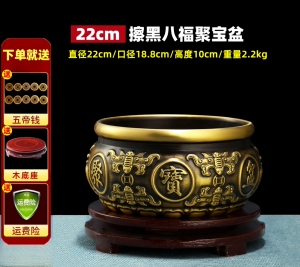 【擦黑】八福聚宝盆 直径22厘米 送底座+五帝钱等