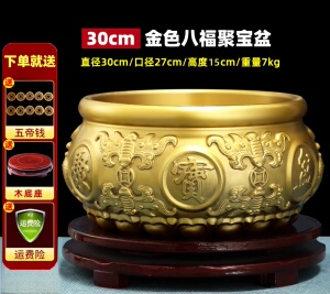 【金色】八福聚宝盆 直径30厘米 送底座+五帝钱等