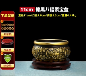 【擦黑】八福聚宝盆 直径11厘米 送底座+五帝钱等