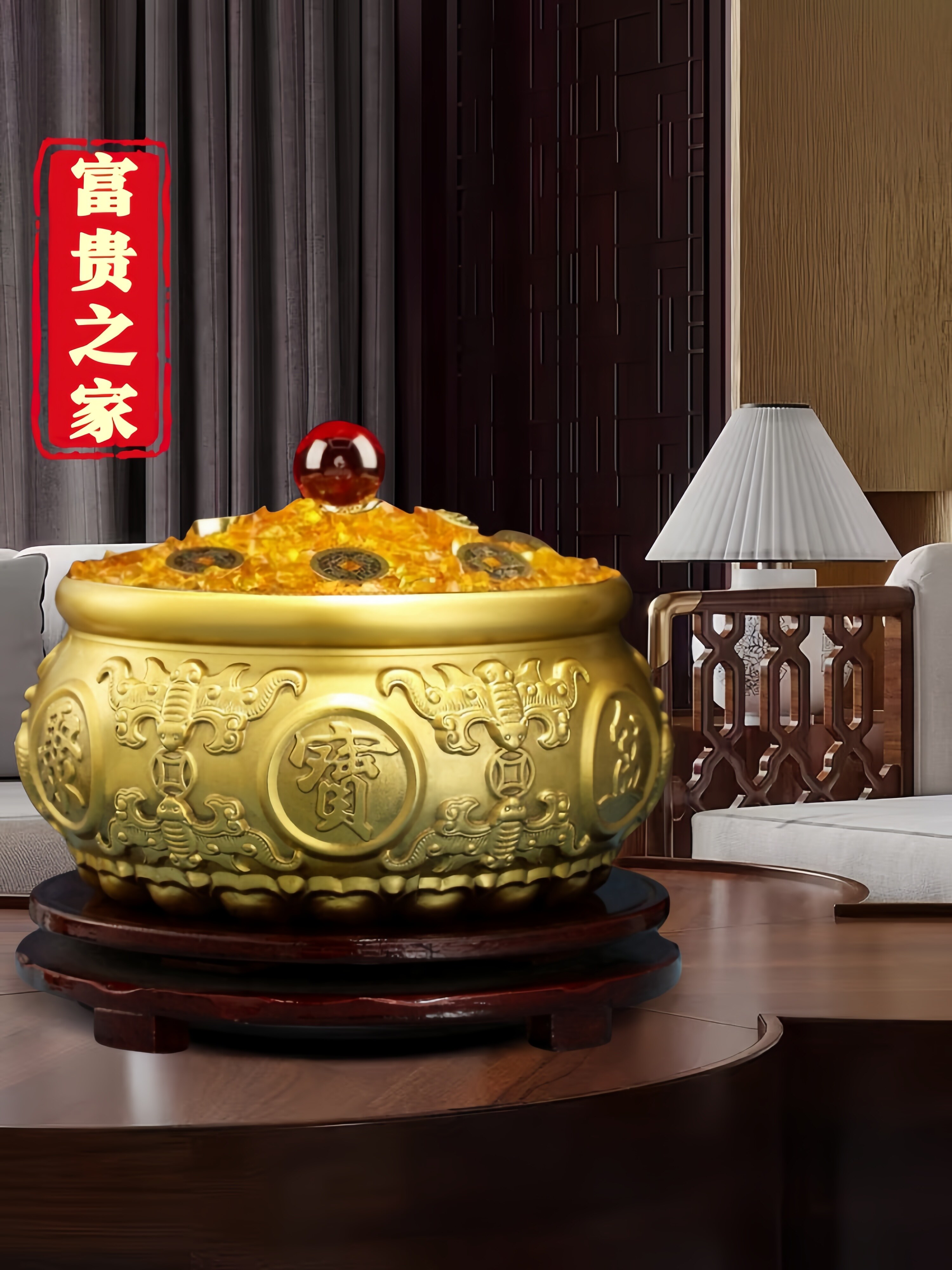 【金色套餐】八福聚宝盆 直径30厘米 +满盆水晶石套餐