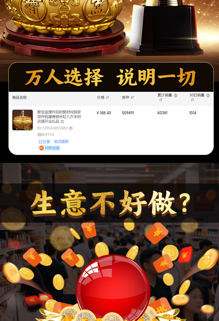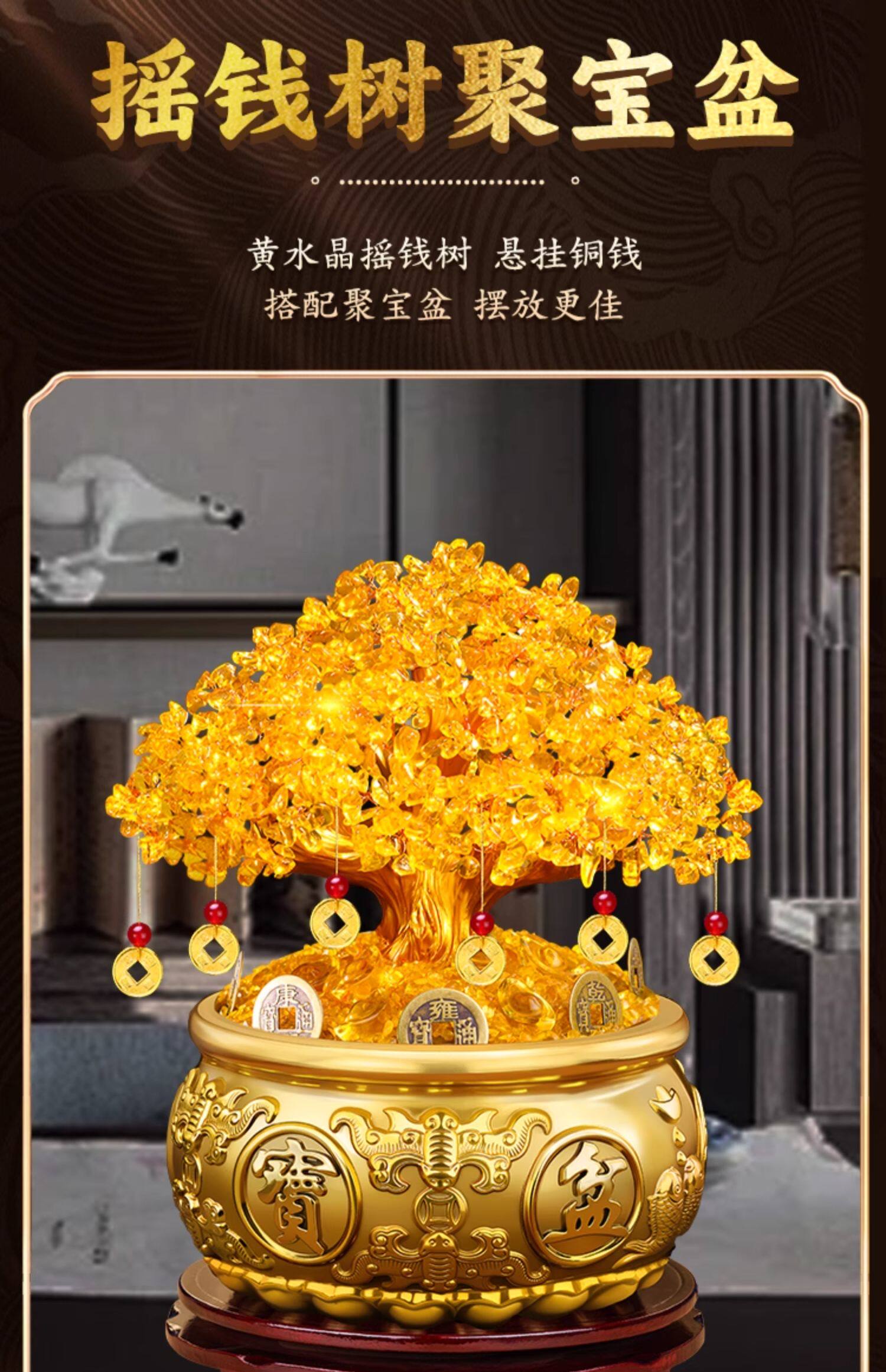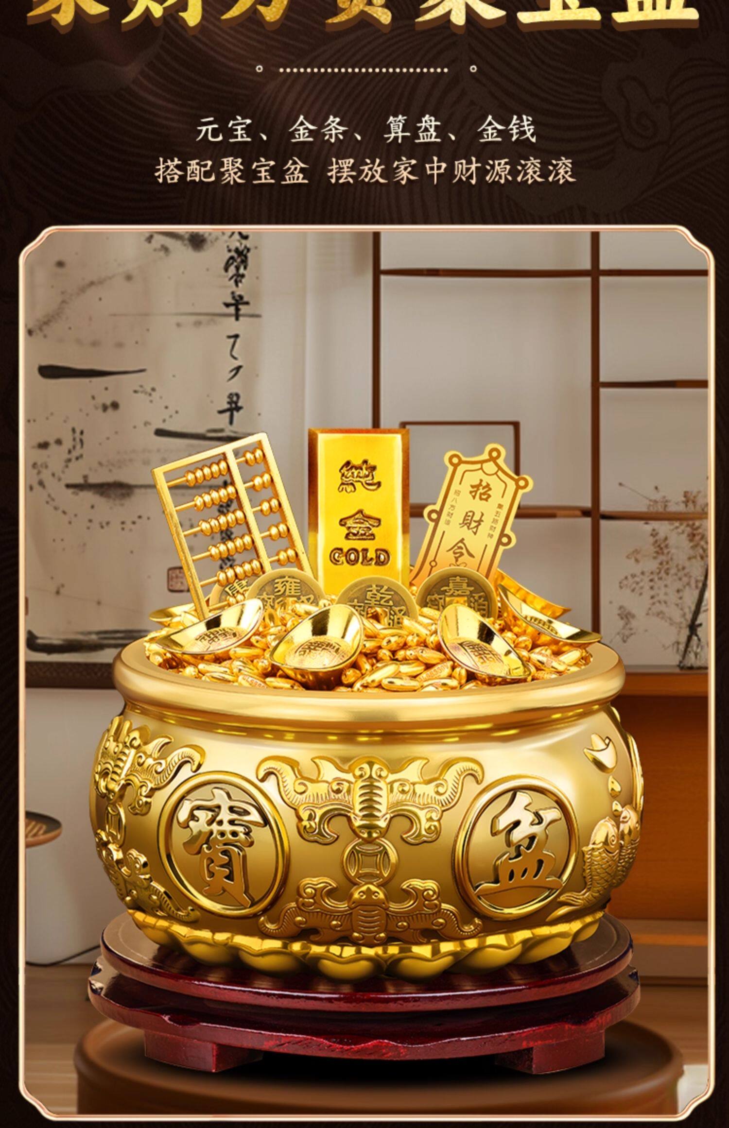 ✅ (店长推荐)16号-全铜聚宝盆【招财进宝挂画】套装+送底座