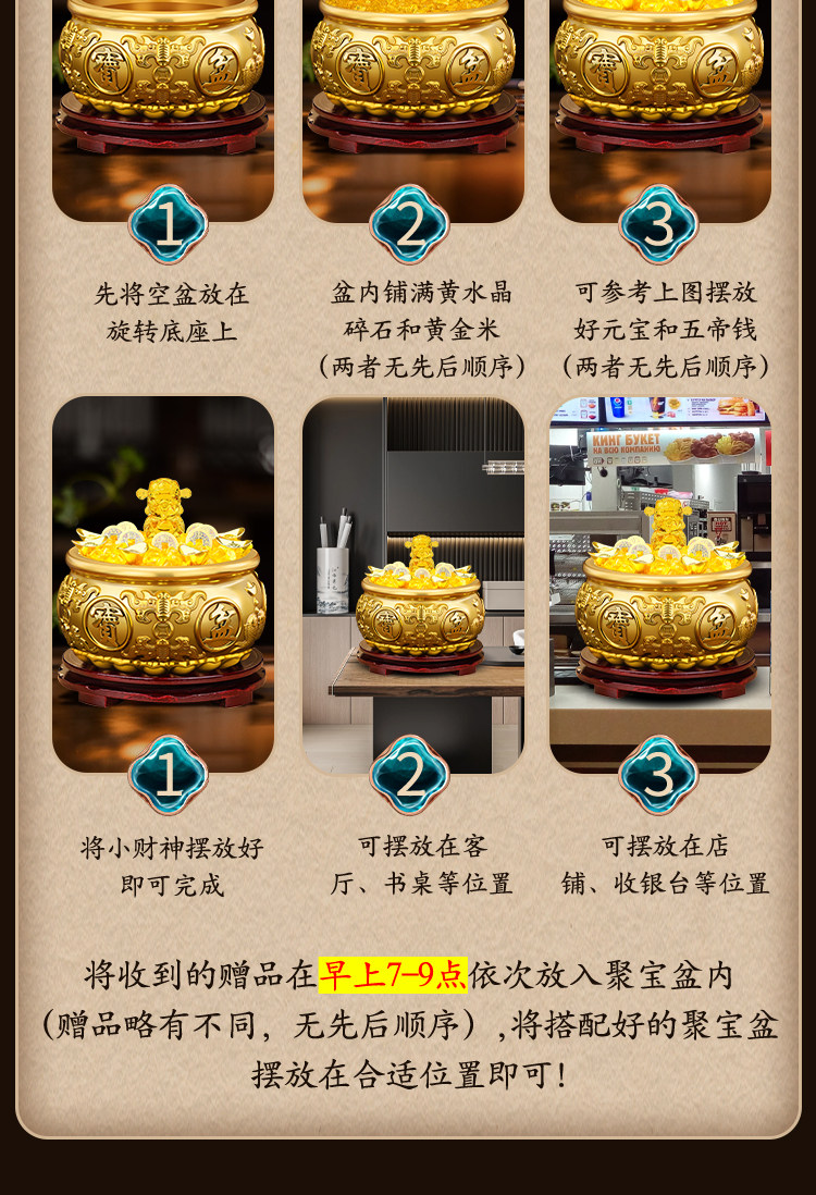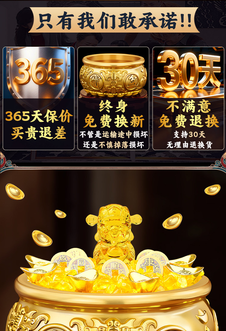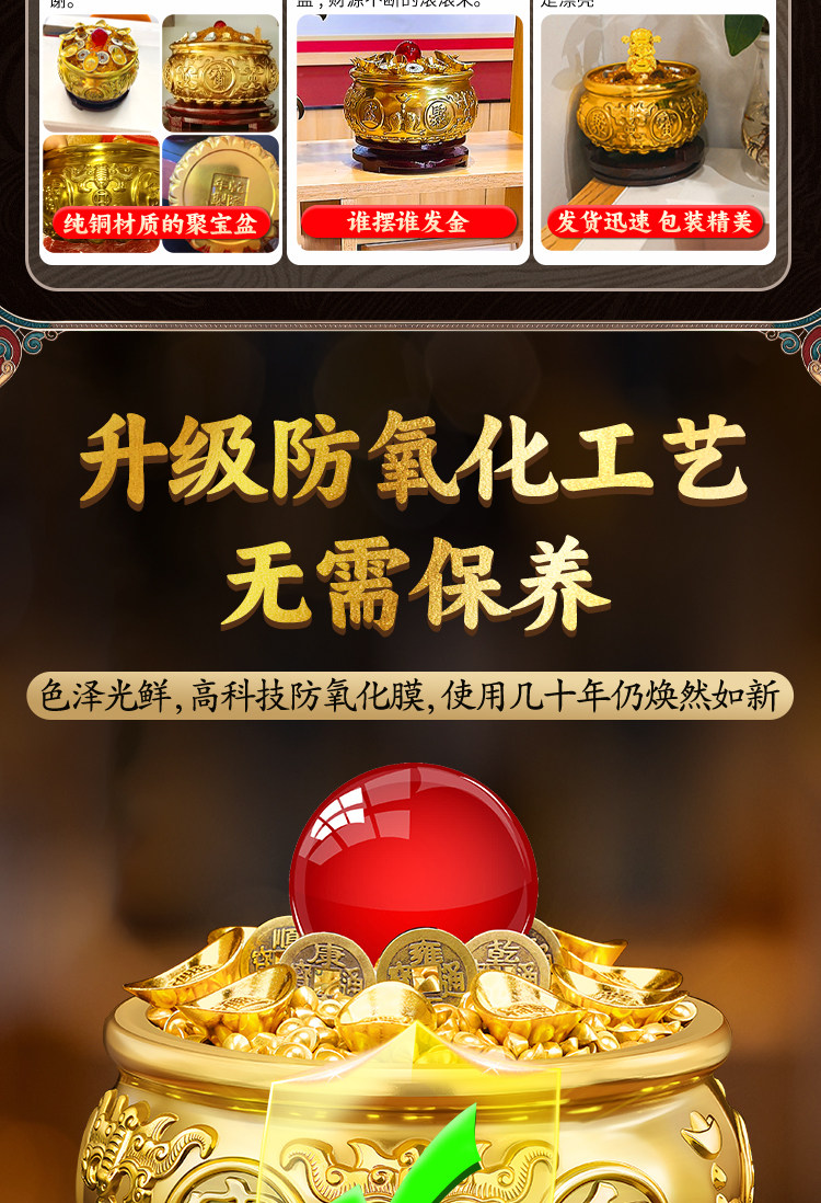 【八宝聚财】11号-精工聚宝盆【升级加厚】(+送财库贴)+送旋转底座